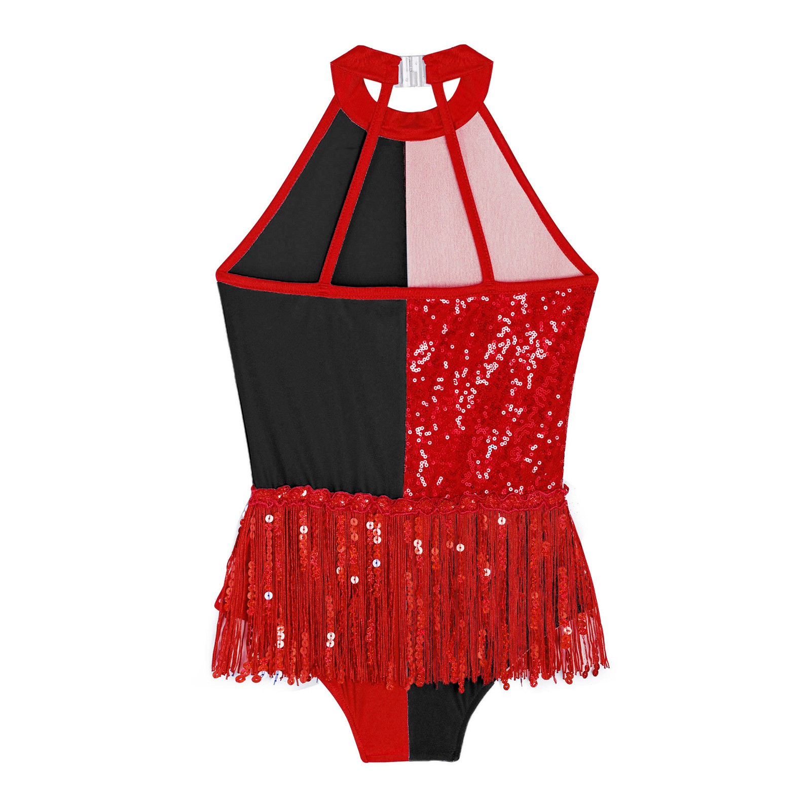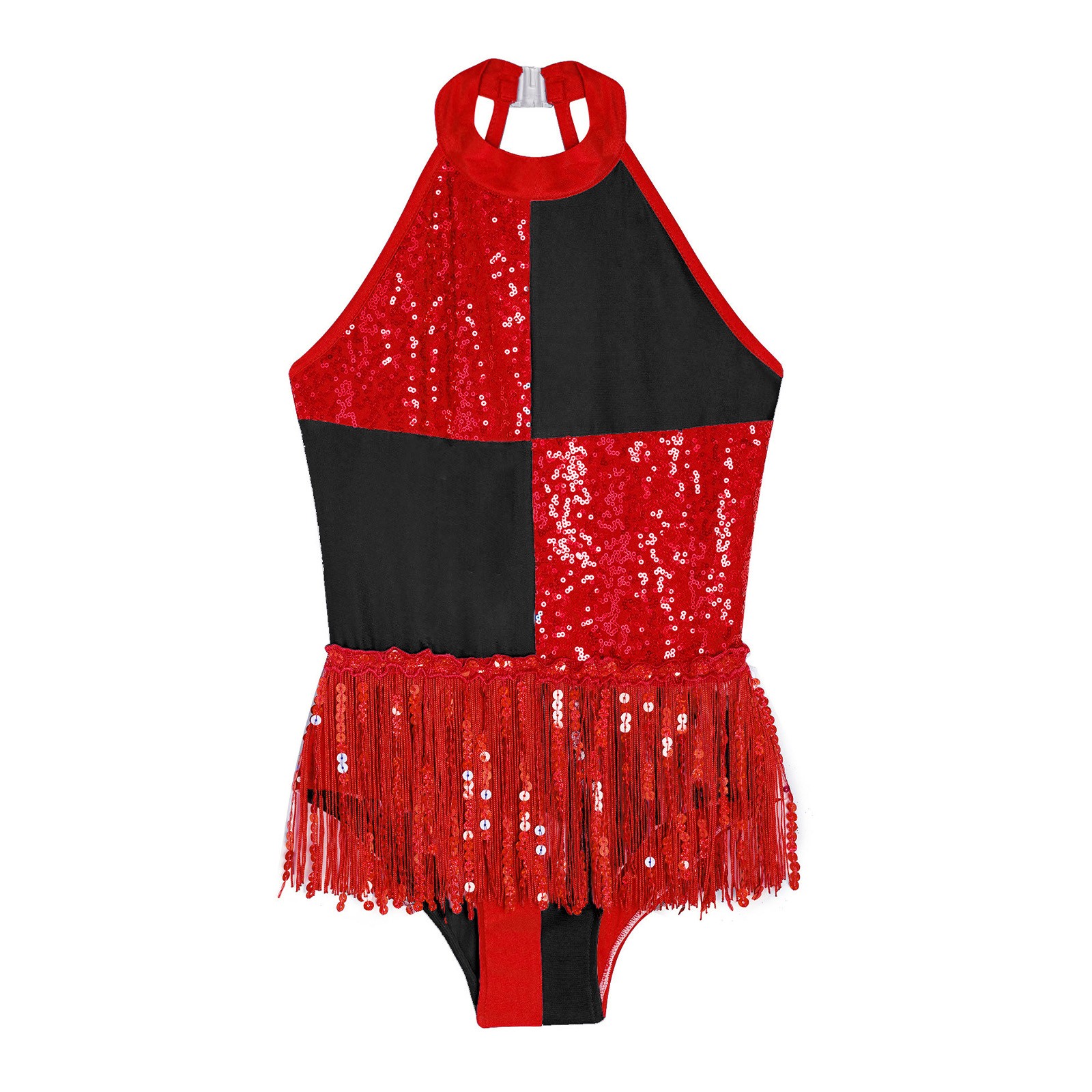 Kids Girls Leotard Performance Bodysuit Gymnastic Dancewear Fringed Dress Jazz