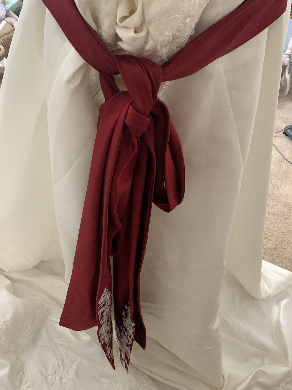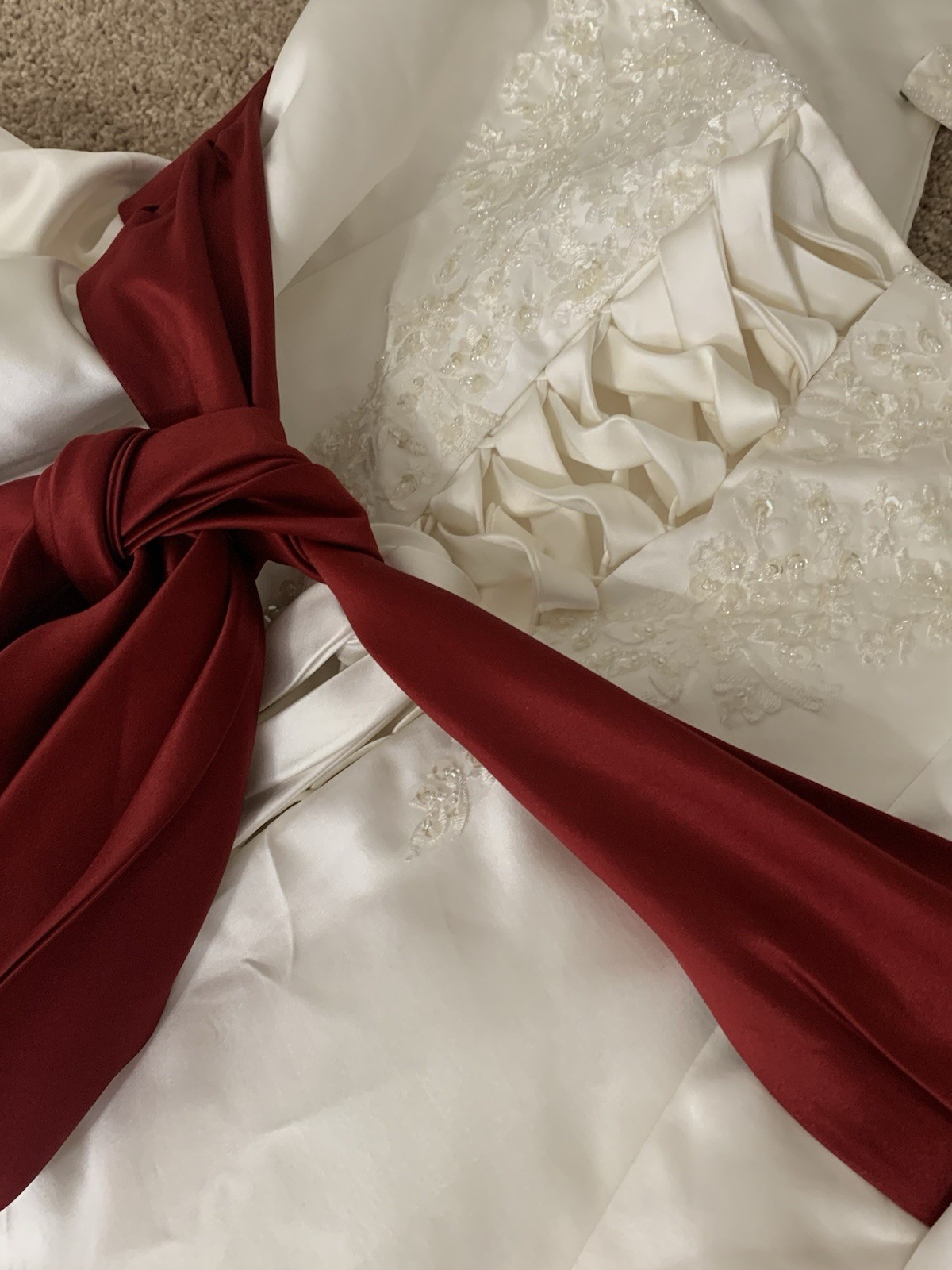 как выглядит Red And White Wedding Dress Waist 40 Adjustable Back фото