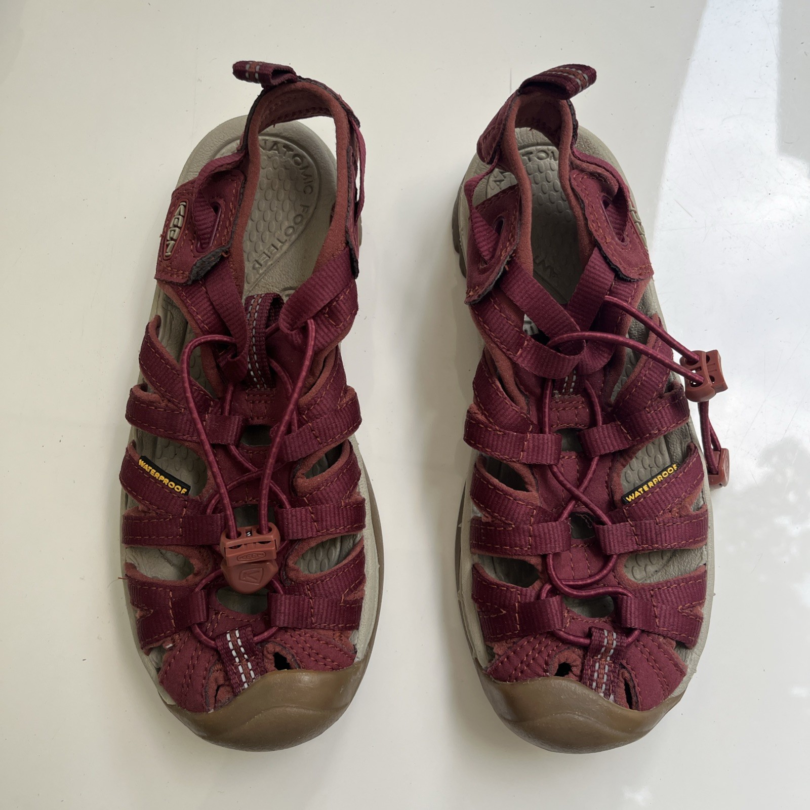 как выглядит New Keen Whisper Hiking Sandals Shoes Women s 6 Beet Red Waterproof EUC фото