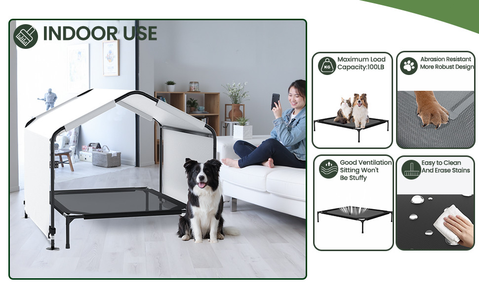 Dog Shade Shelter House Outdoor Pet Tent Canopy w/ Bed for Large Medium Dogs