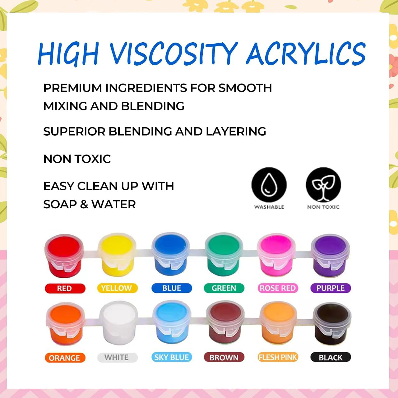 Mini Acrylic Paint Set for Kids,5 Pack 12 Colors Washable Kids Paint Kit,Perfect