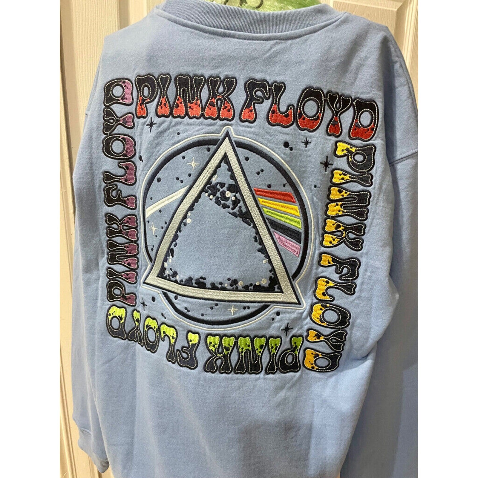 PINK FLOYD SWEATSHIRT EMBROIDERED ROCK PSYCHEDELIA 60 PRISM RAINBOW BEAM Sz M