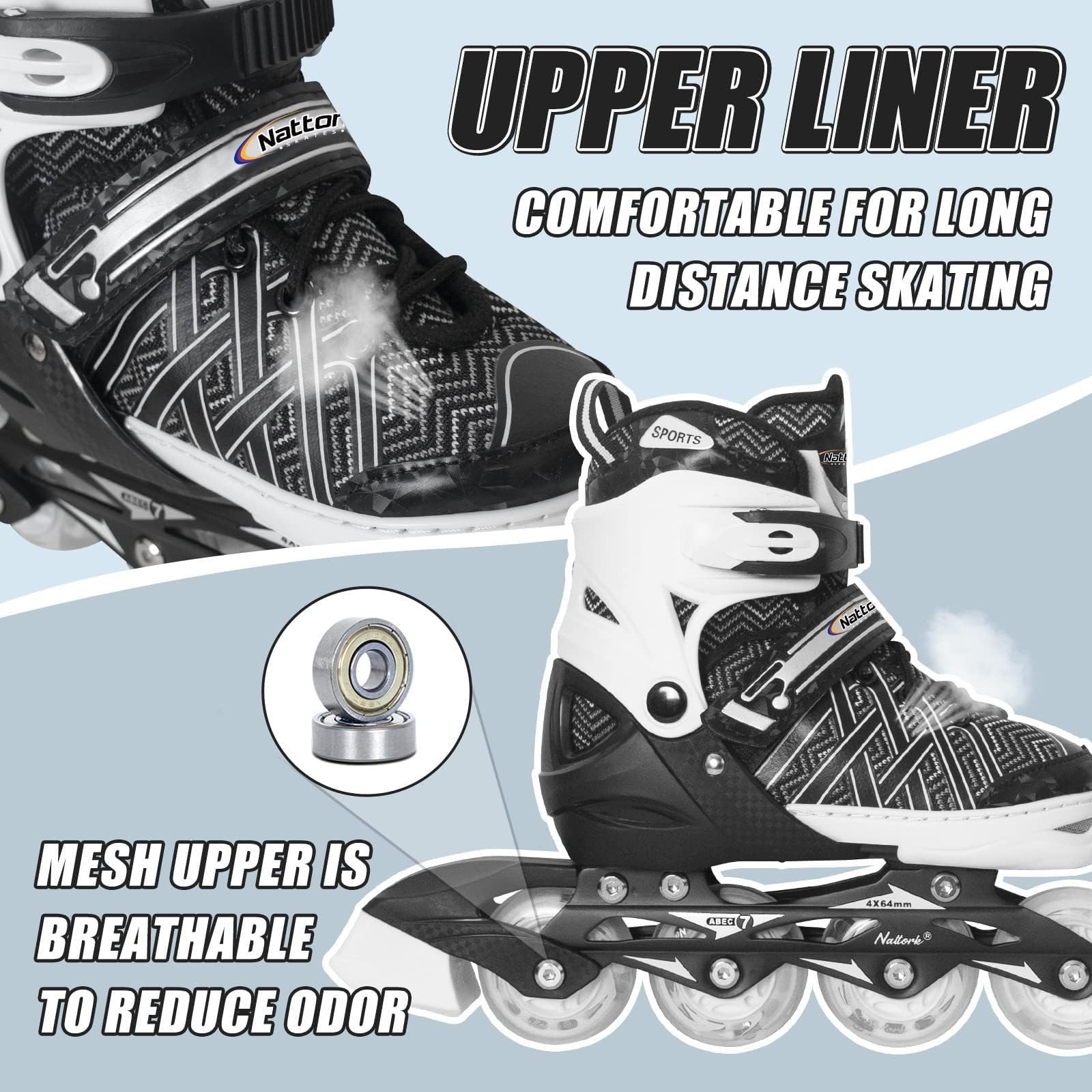 Nattork Adjustable Inline Skates for Kids Boys Girls, Blue Black Red with L...
