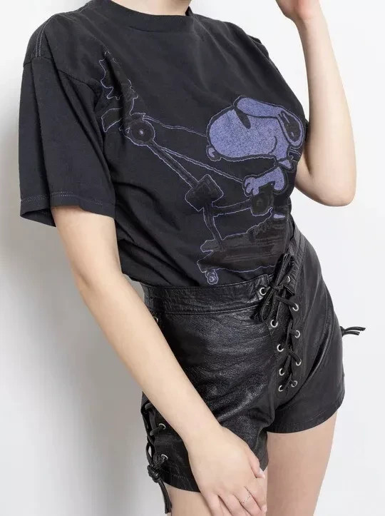как выглядит Leather Biker Shorts - Vintage 80s Women