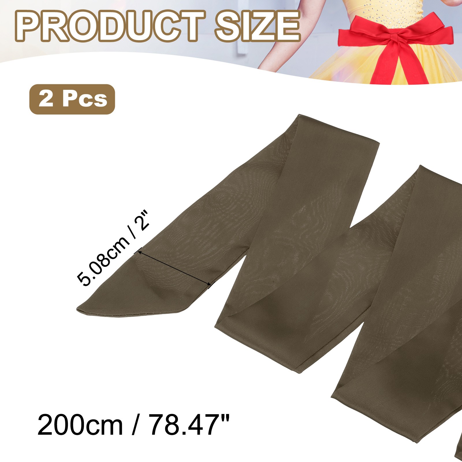 как выглядит 2 Pcs Satin Sash Belt Wedding Party Bridal Scarf Waist Belts Coffee фото