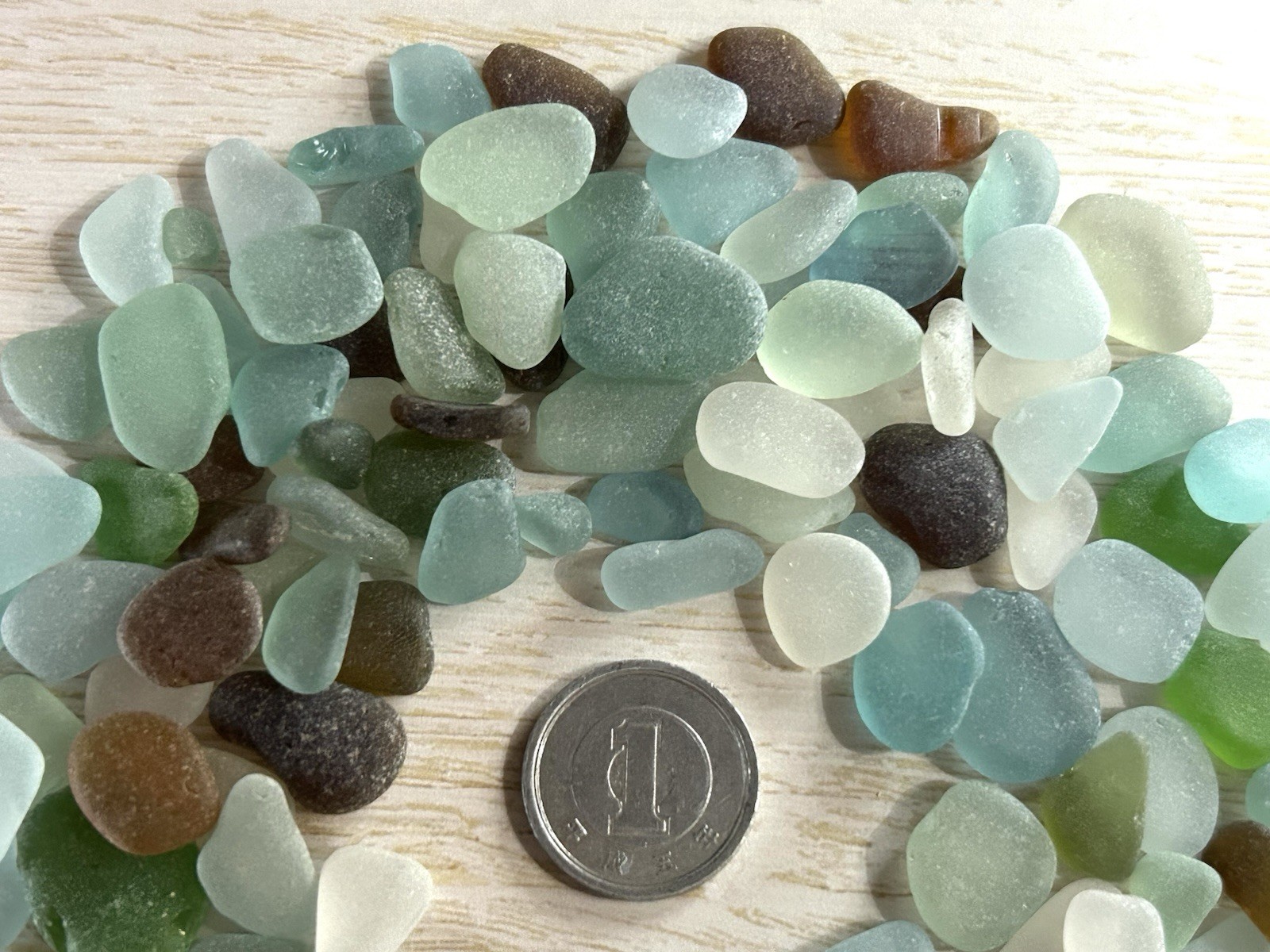 Japanese sea glass Surf-Tumbled Beach Glass small Color mix 107g