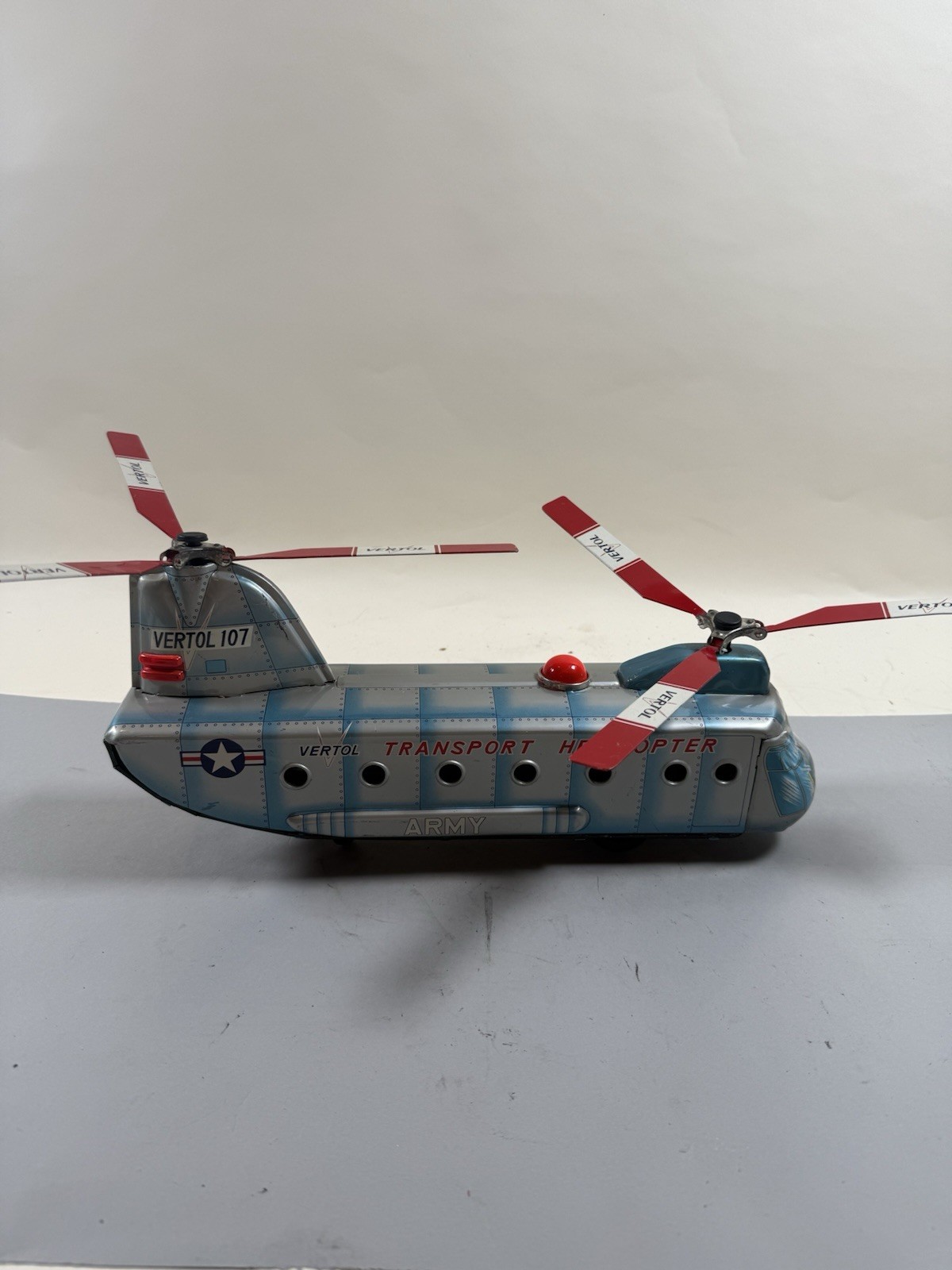 Haji Made in Japan Tin Litho Vertol 107 Dual Prop Army Helicopter Untested