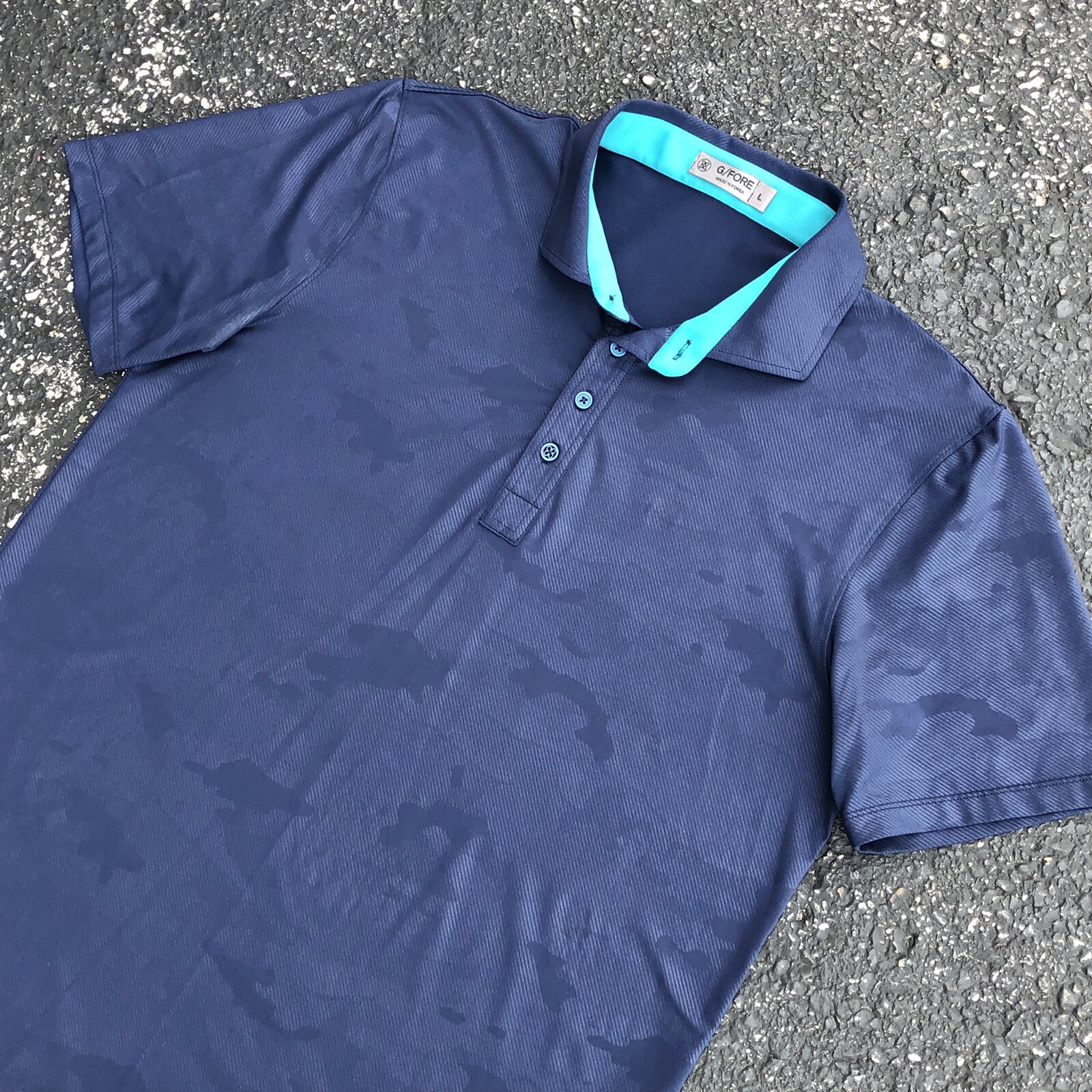 G/Fore Men s CAMO Embossed Performance Polo Shirt Blue Navy Size Large - Read
