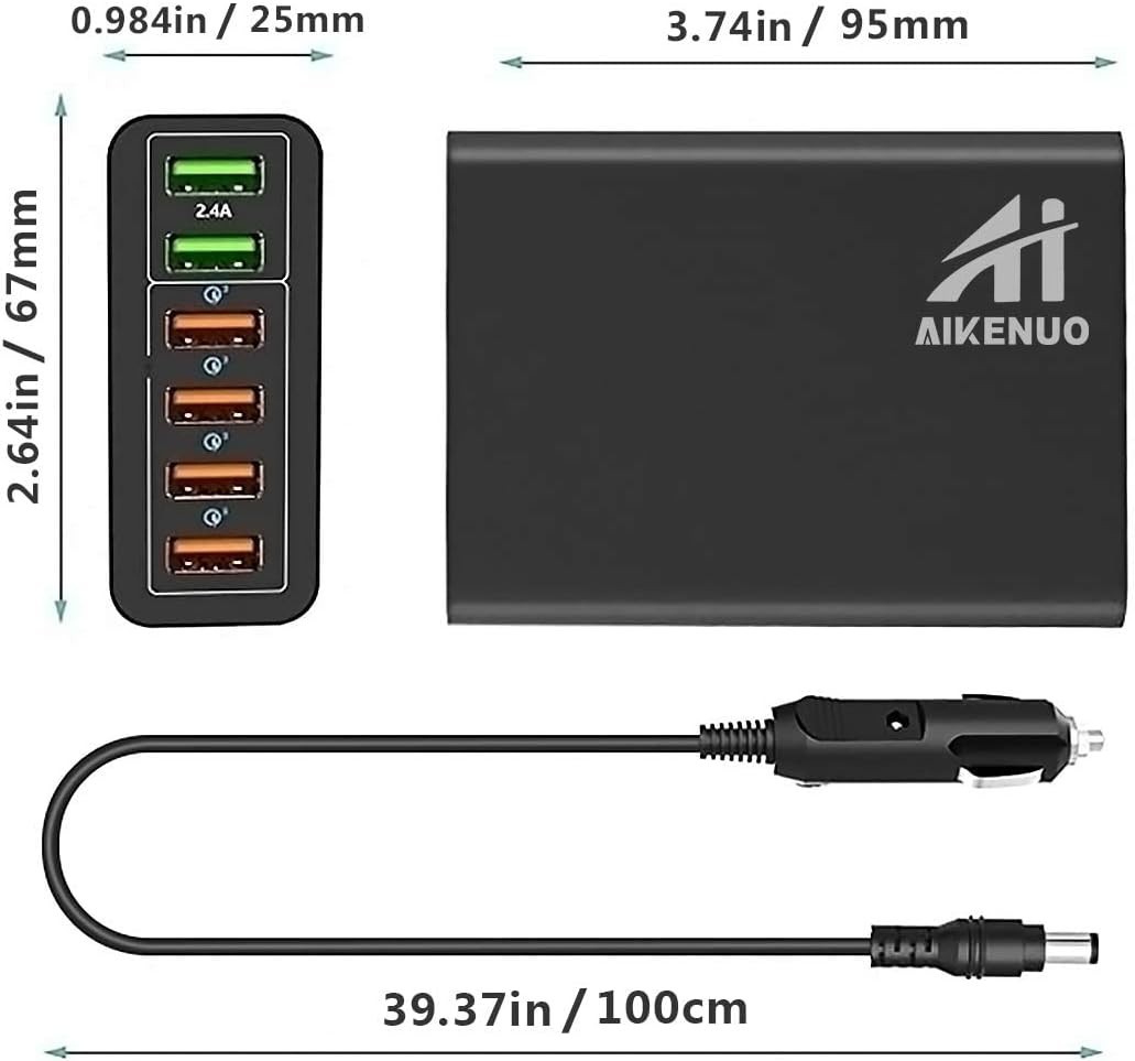 Multi Ports USB Car Charger 96W 6 Port QC3.0 Fast Car Charger Adapter Multiple