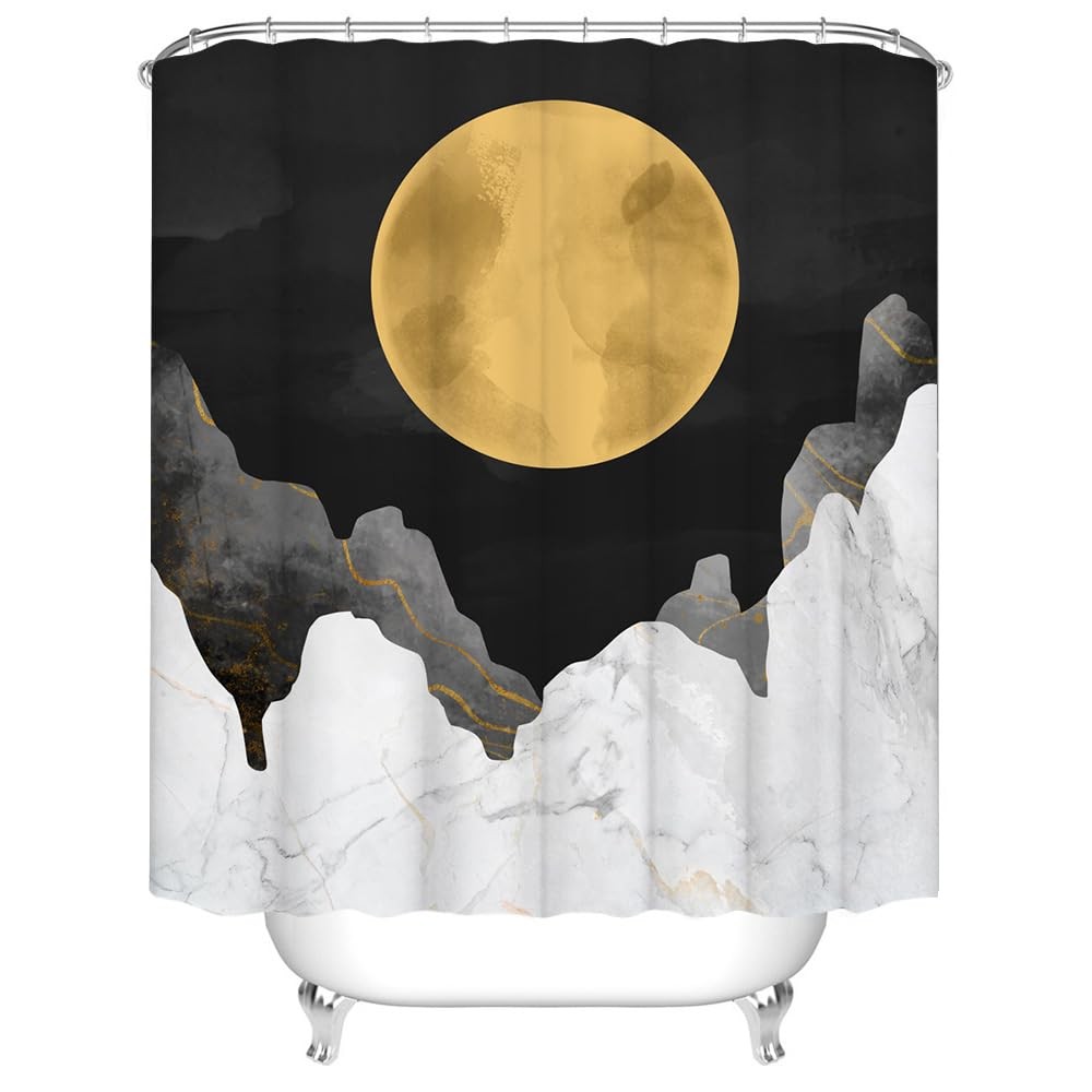 72x72 Black Grey White Abstract Full Moon Minimalist Shower Curtain Hooks
