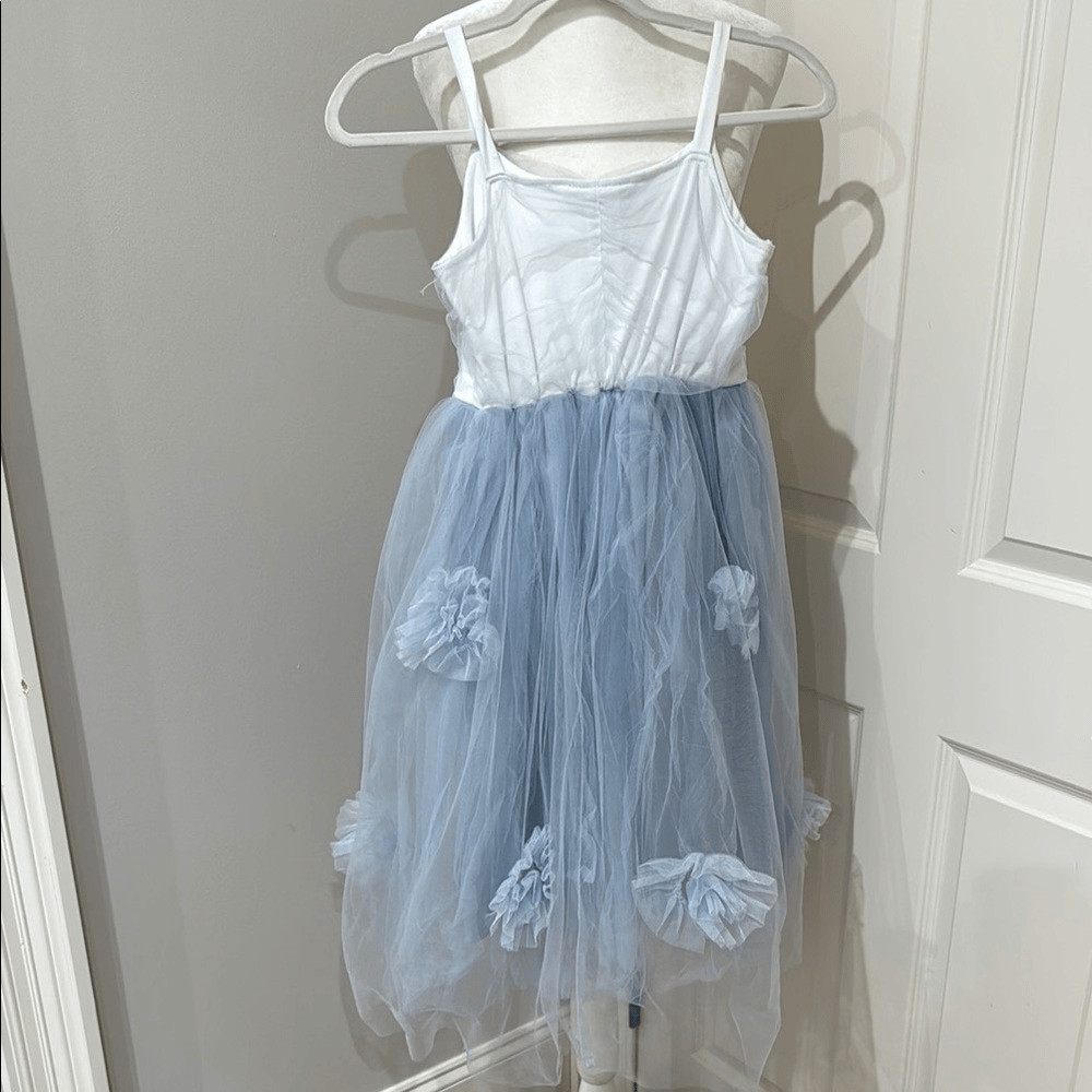 как выглядит Pottery Barn Kids White and Blue Dance Costume Size 7-8 фото
