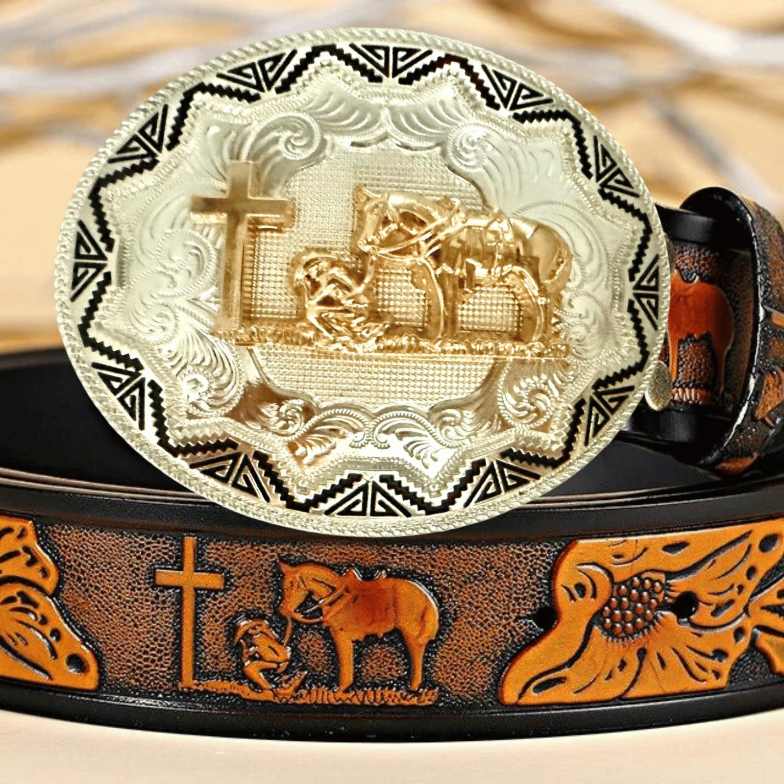 Western Rodeo Silver Black Golden Stallion Design Fashion Cowboy Belt Buckle