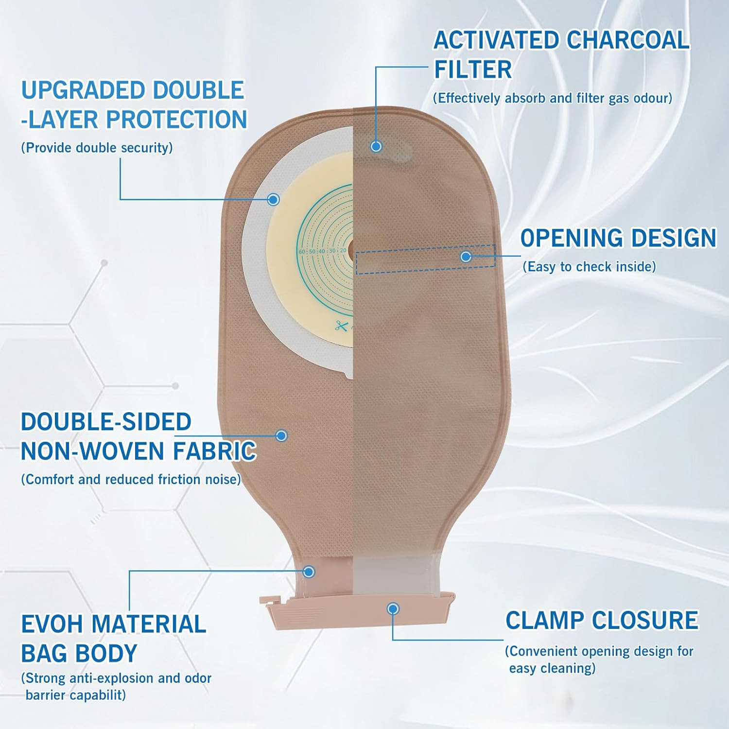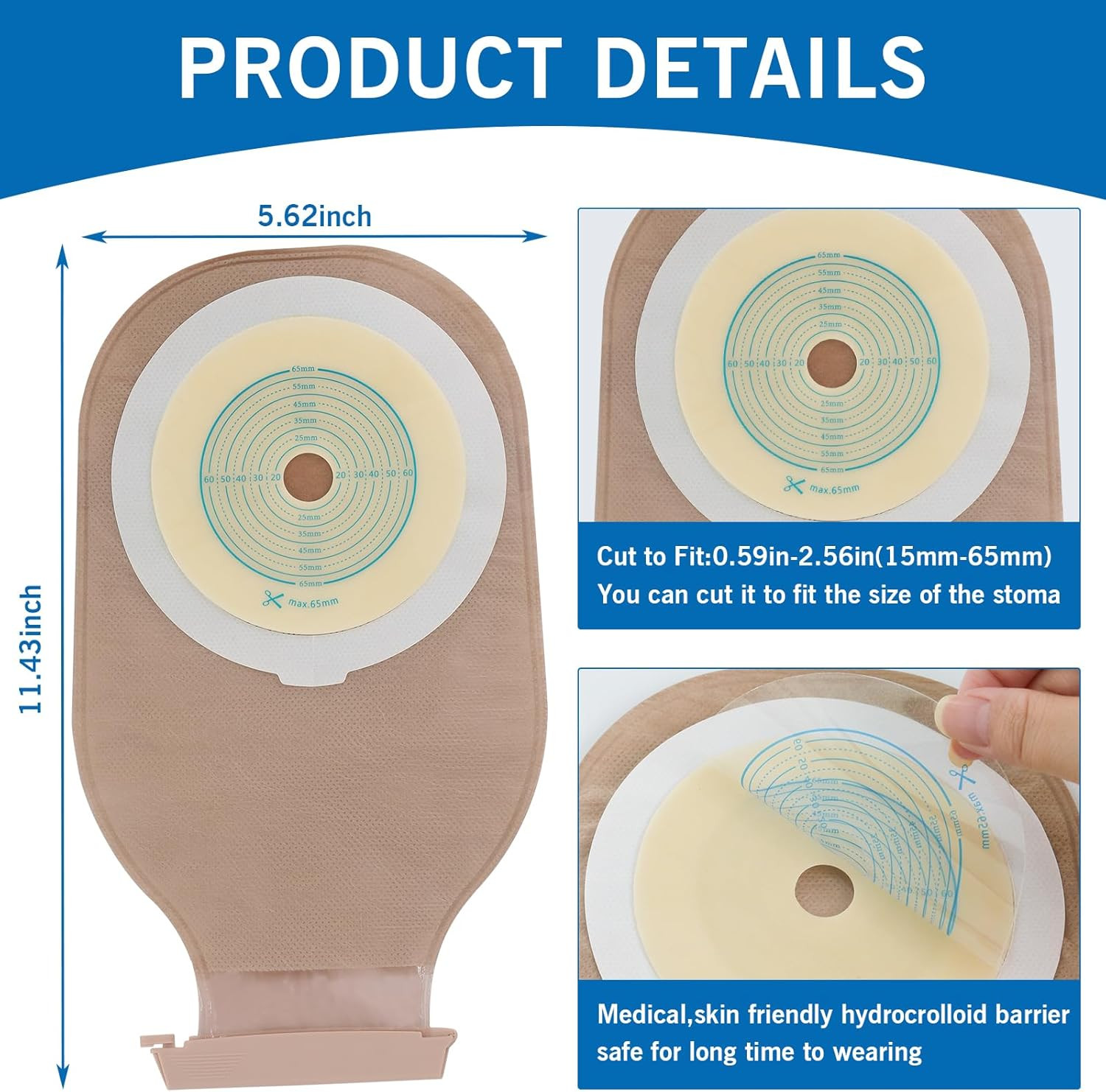как выглядит 25 Pack Ostomy Bags, One Piece Colostomy Bag Ostomy Supplies, 15-65Mm Cut-To-Fit фото