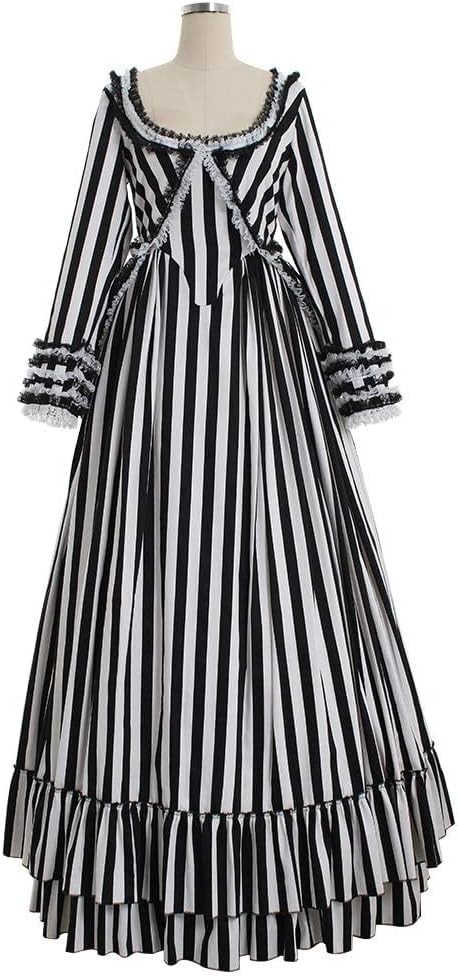 Hollow Katrina Van Tassel Costume Dress Black and White Striped Victorian Dress