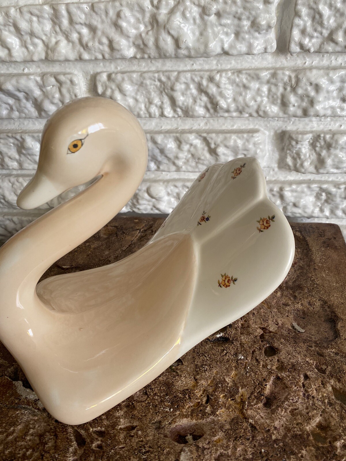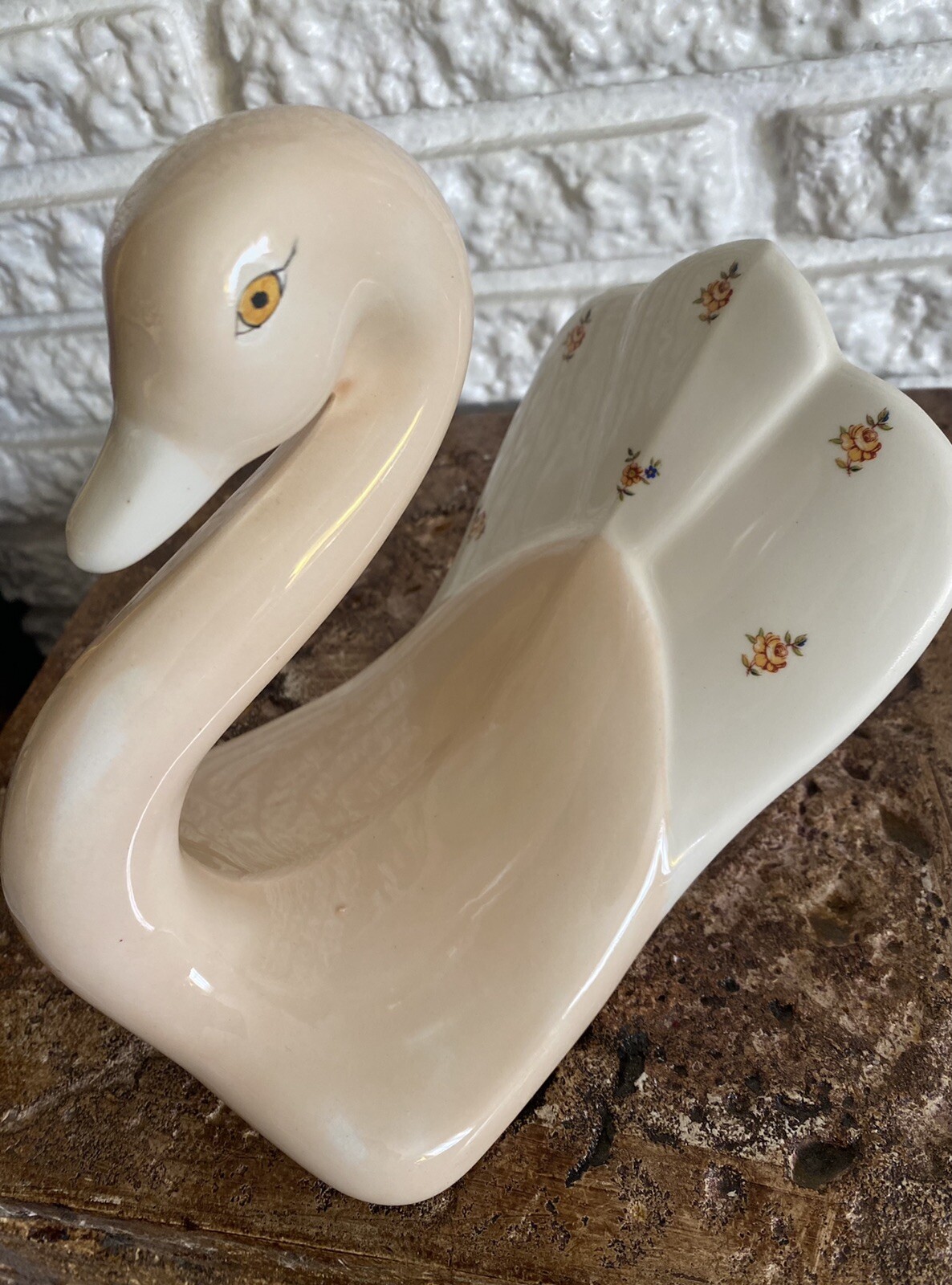VINTAGE 1987 Ceramic Swan Floral Towel Holder 8 . Farmhouse Decor. Farmhouse