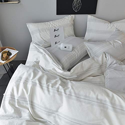 Duvet Cover Set Size 100 Cotton White/Light Gray Full/Queen White and Silver