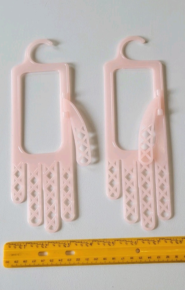 как выглядит Vintage 1950s Handiform NY Plastic Glove Dryer Pink Pair W/ Washboard Ribs фото
