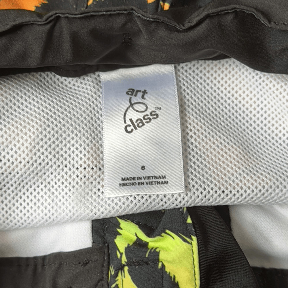 Art Class Size 6 Boy s Board Shorts Swim Trunks Palm Trees Black Orange Yellow