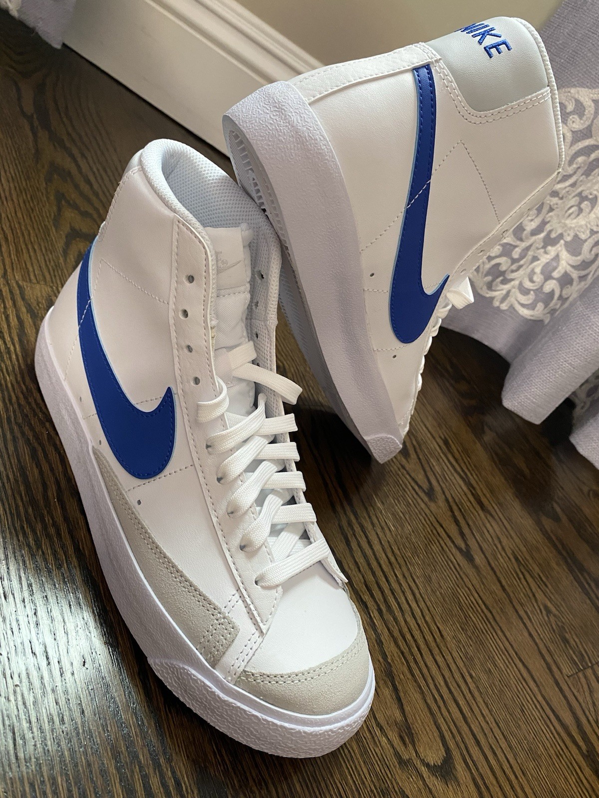 как выглядит Nike Blazer Mid 77 Youth Sz 6.5Y White Game Royal Platinum DA4086-113 Sneakers фото