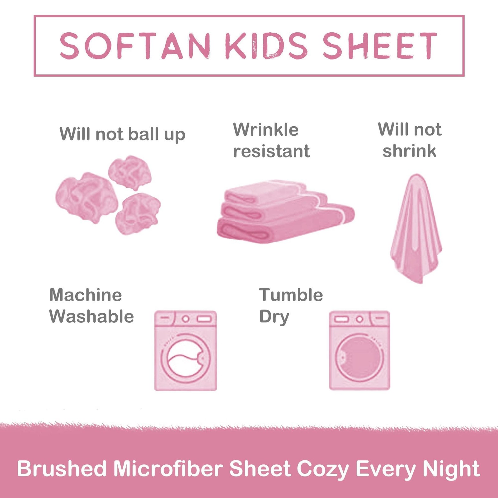 Softan Microfiber Kids Bed Sheet Set, Full Size Fitted Sheet, Breathable Si...