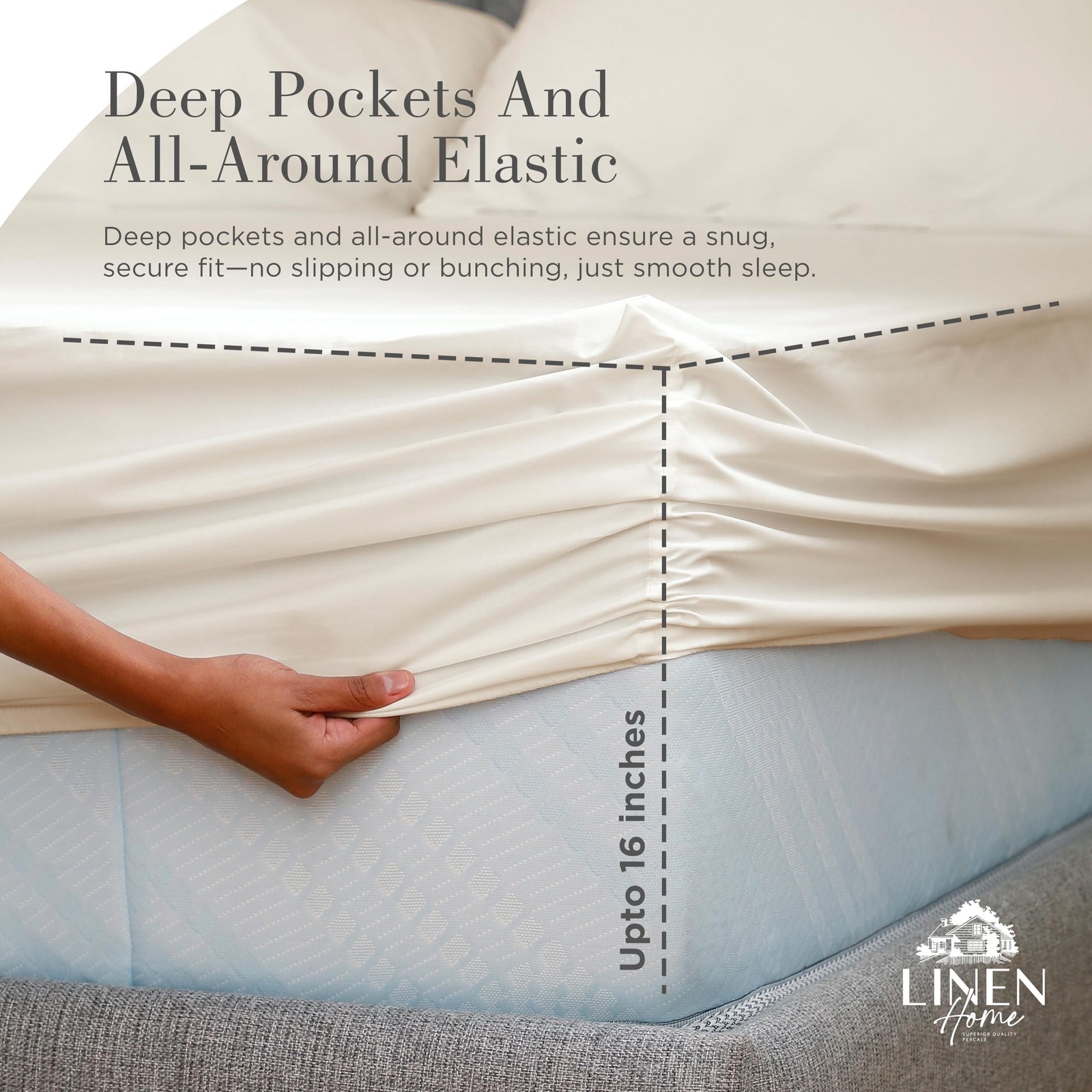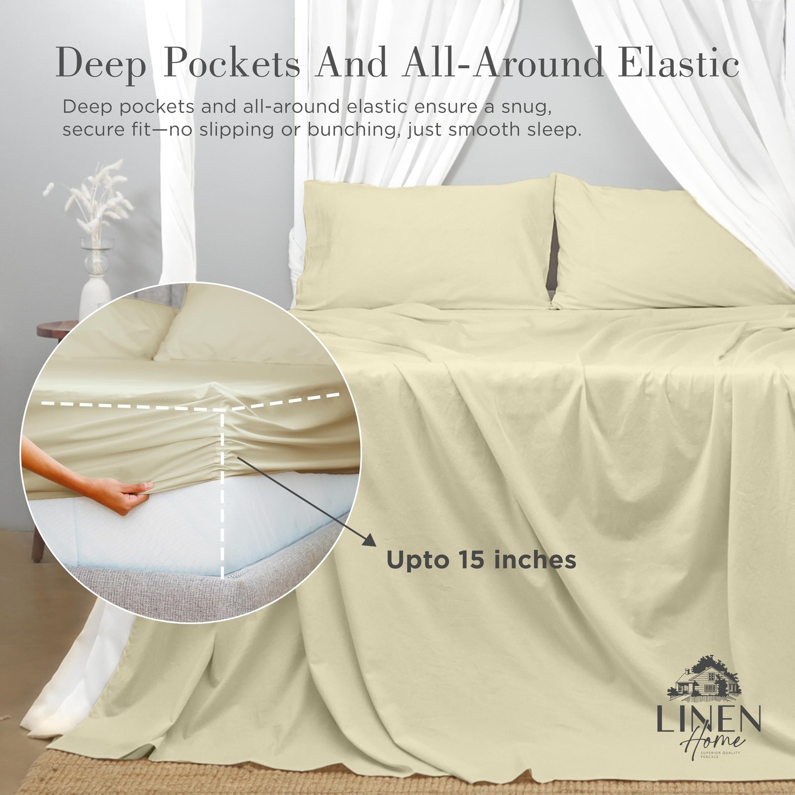 Linen Home Washed Cotton Percale Fitted Sheet King Size, Ivory, 1 Deep Pocket...