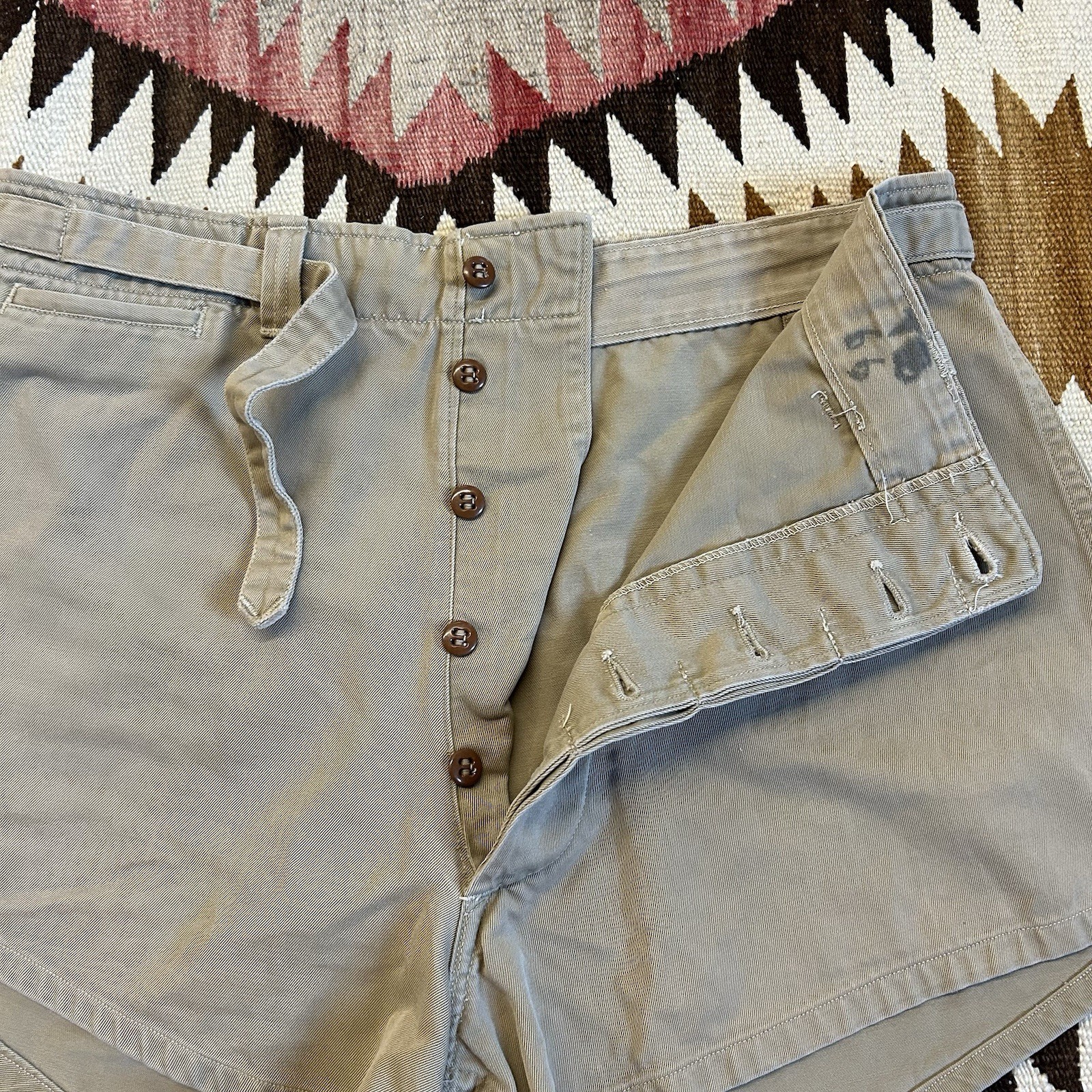 Vintage 1940s WW2 US Military Belted Swim Scuba Trunks Khaki Shorts Sz 32