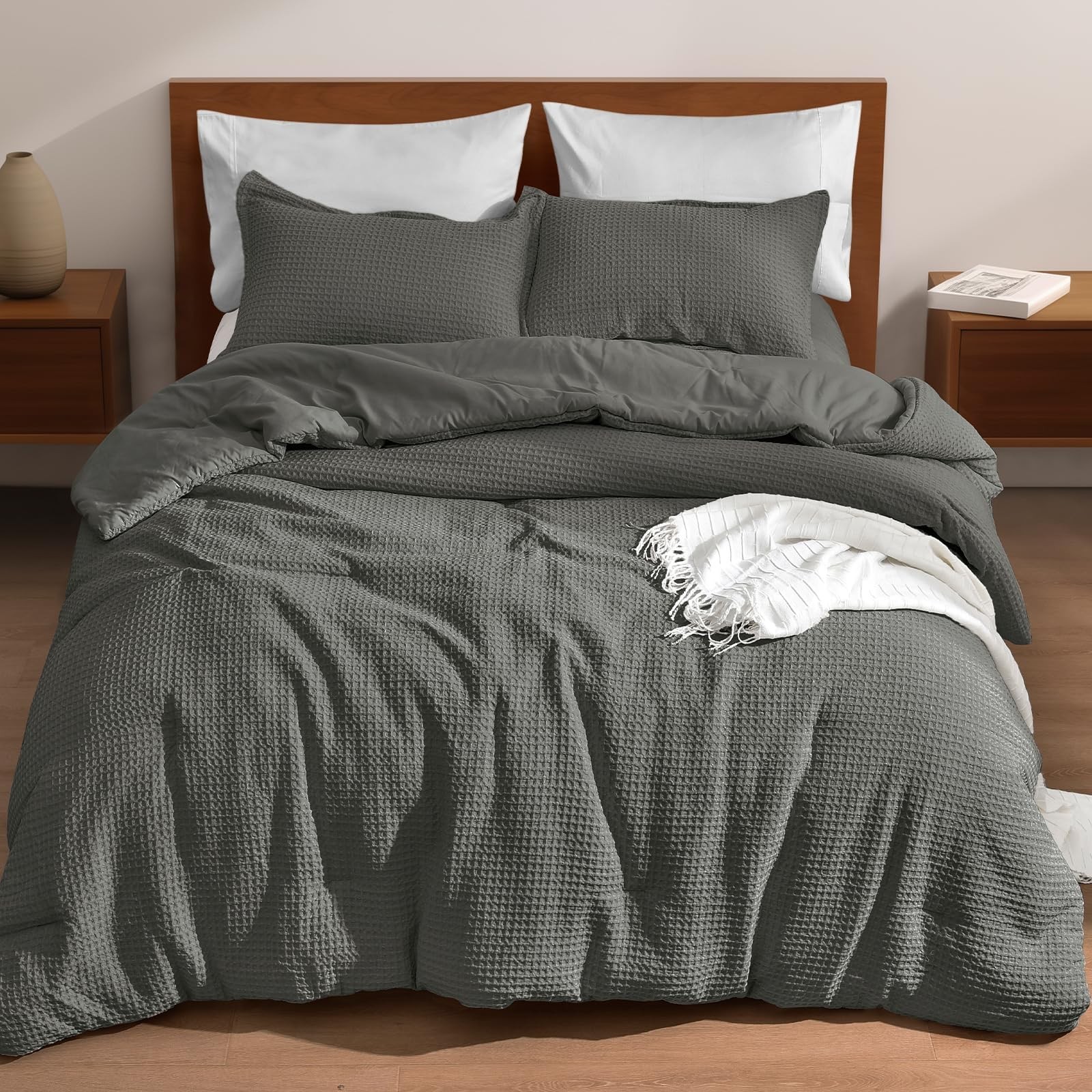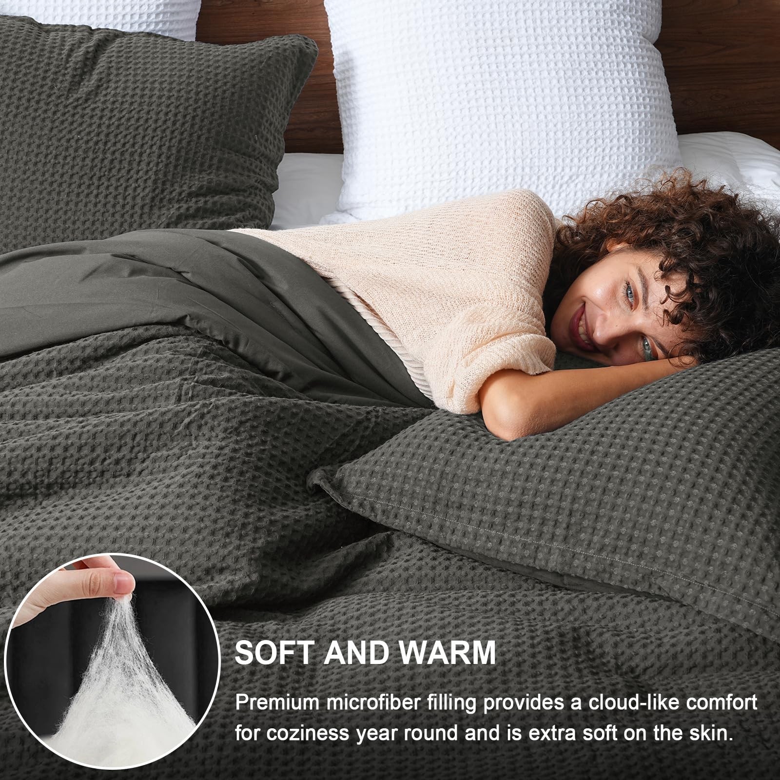 PHF Ultra Soft Waffle Weave Comforter Set King Size, 3 Pieces Lightweight Bre...