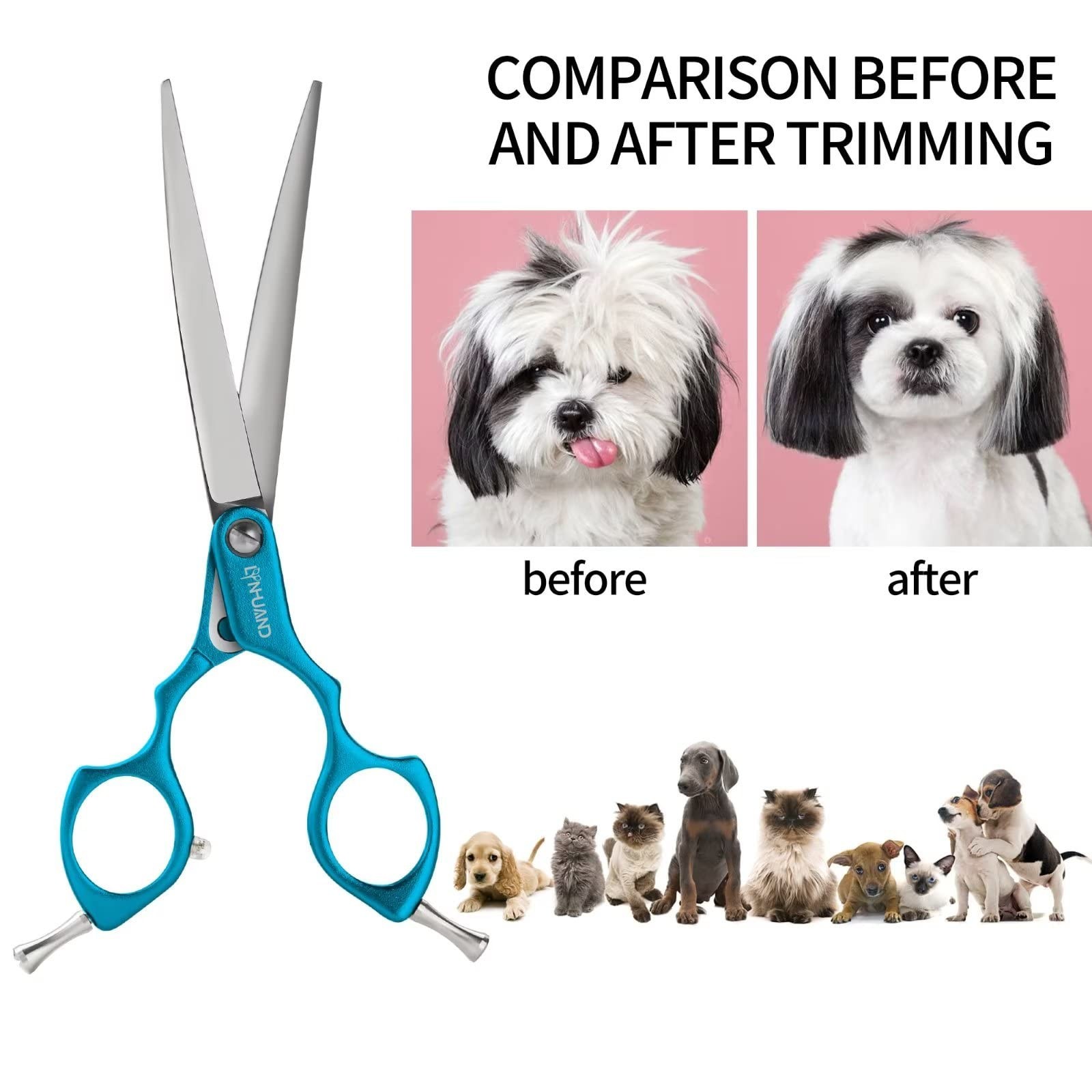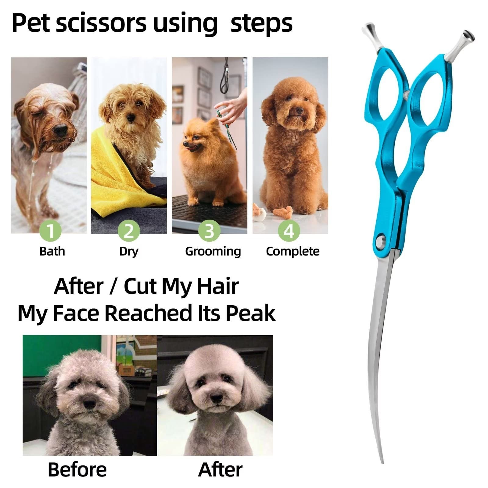 6.5 Curved Grooming Scissors for Dogs 440C Stainless Steel Professional Dog ...