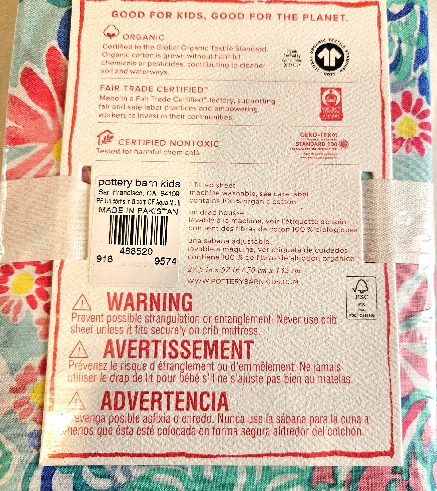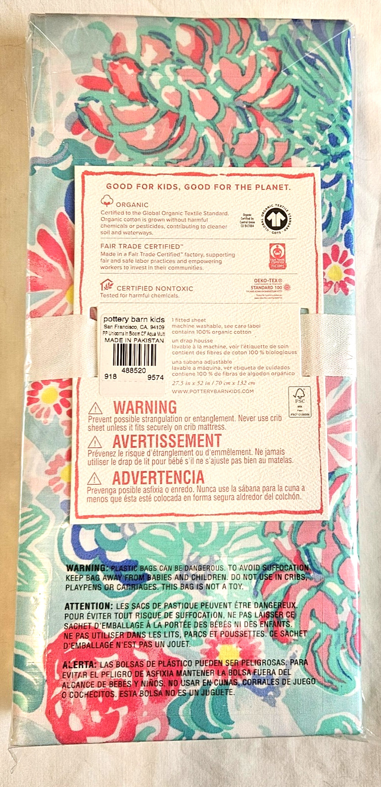 Pottery Barn Kids Lilly Pulitzer Unicorns in Bloom Organic Crib Fitted Sheet NWT