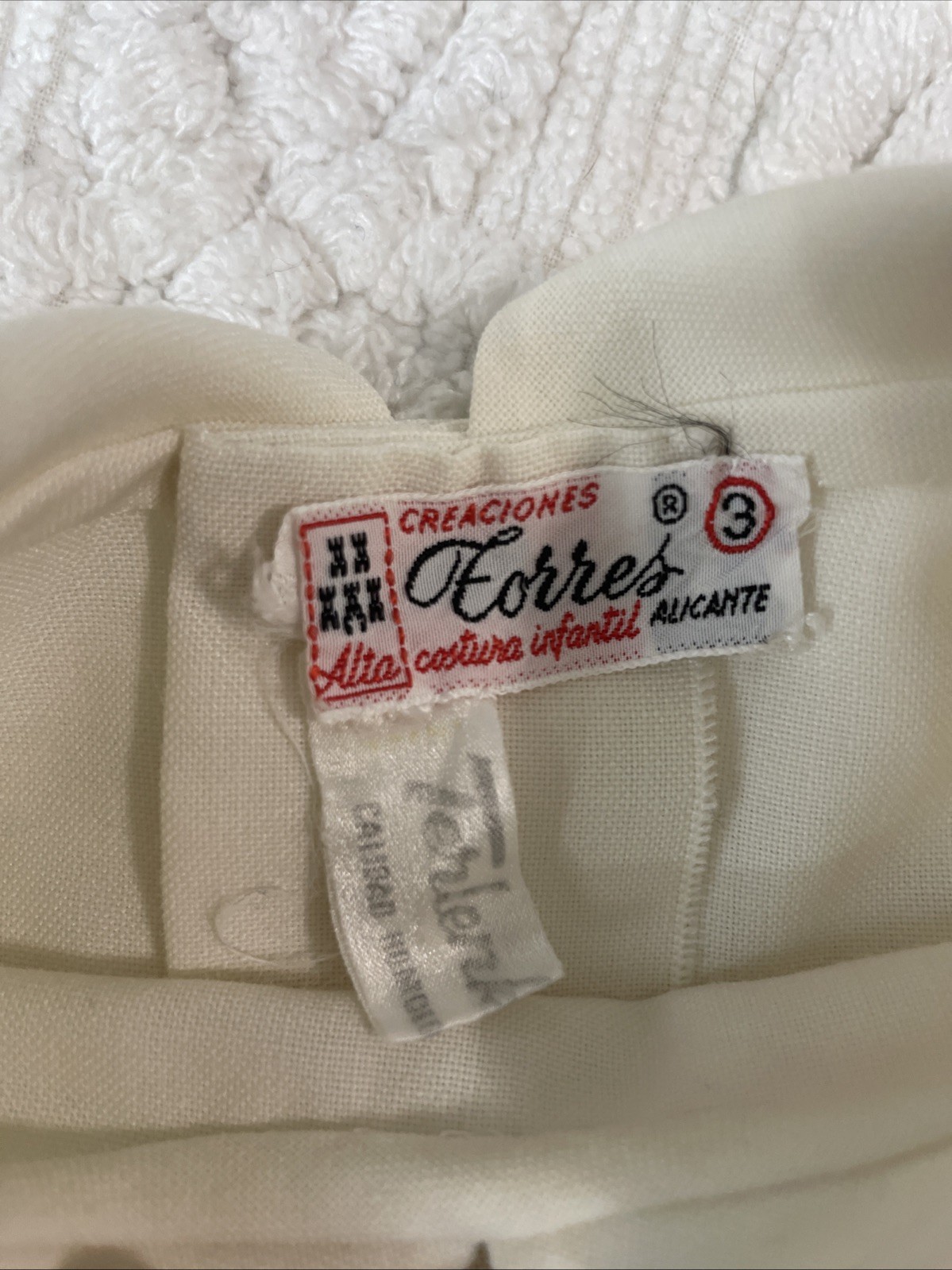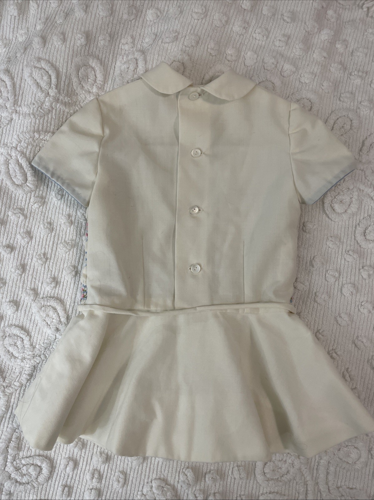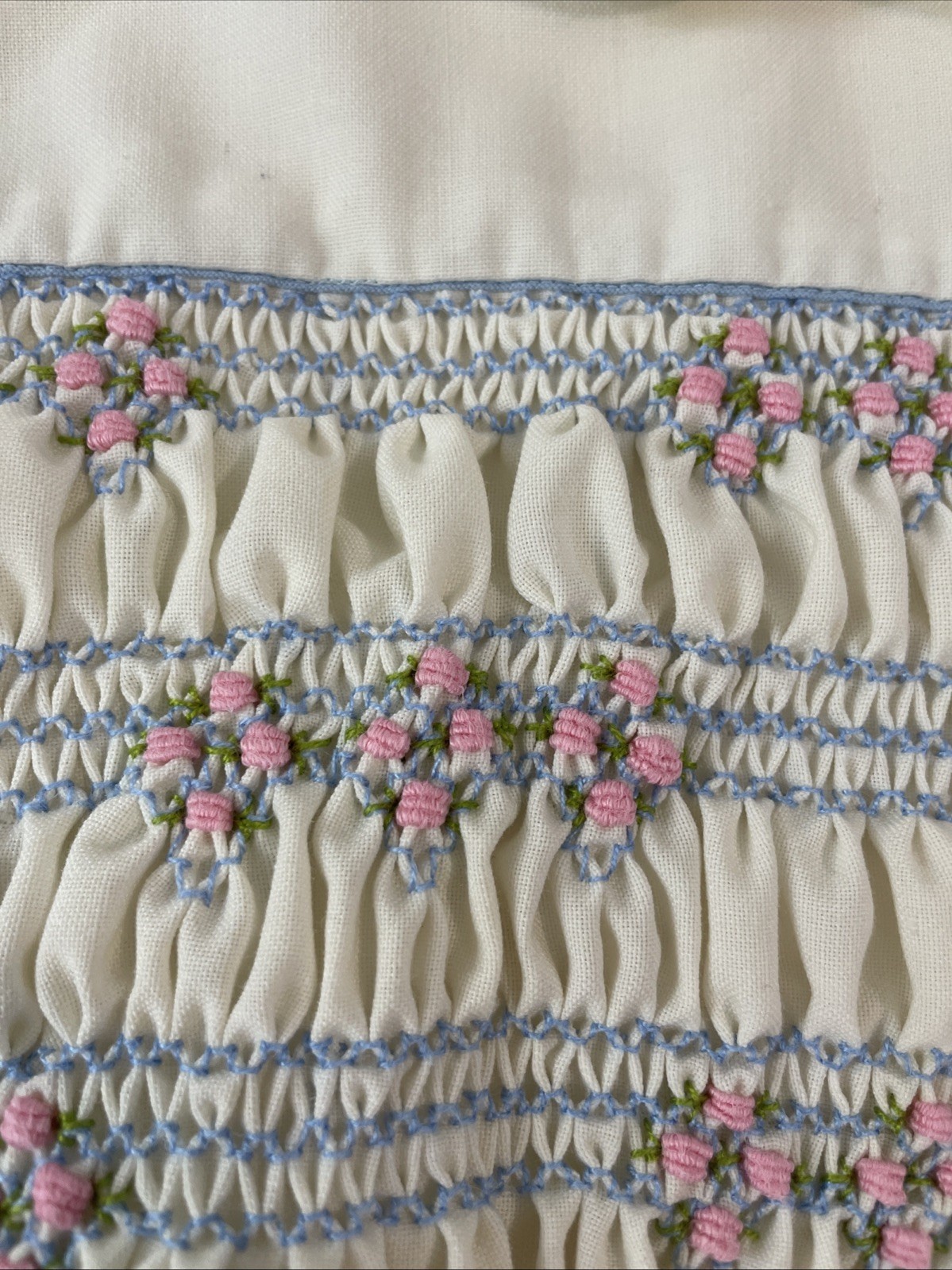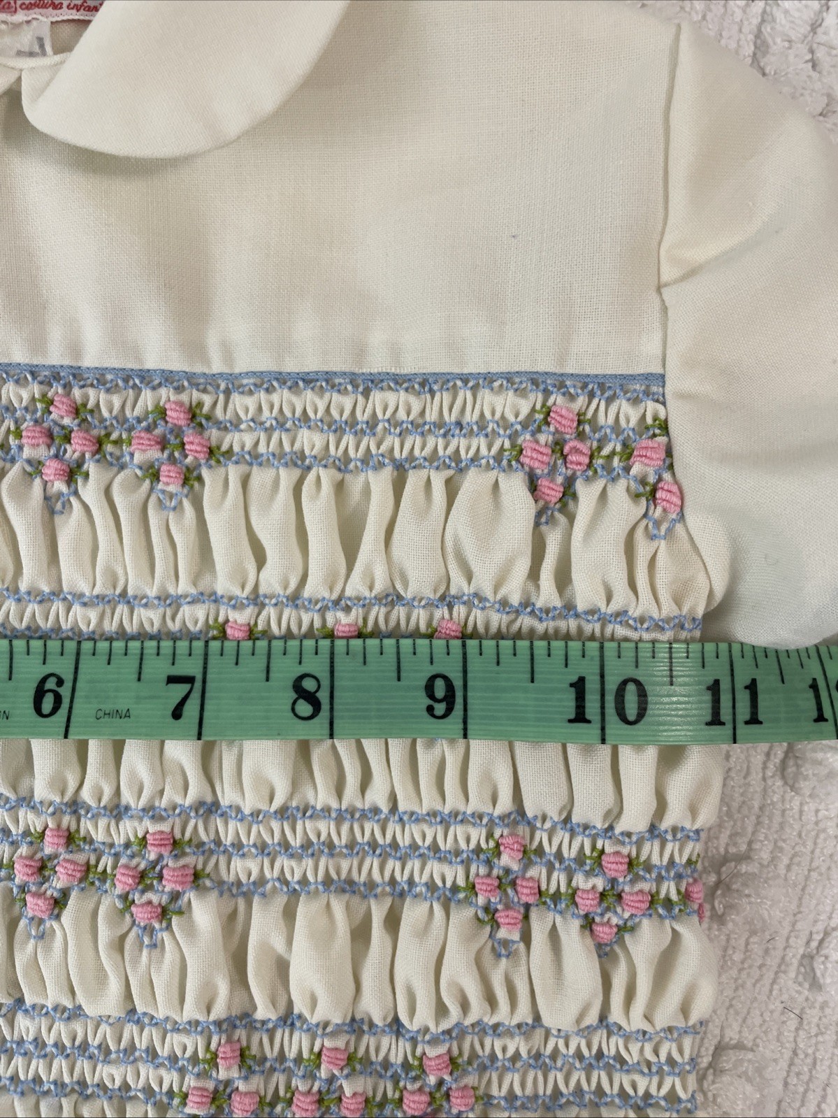 VTG Creaciones Torres Smocked Toddler Girl Dress Floral Ivory Size 3t Mod Retro