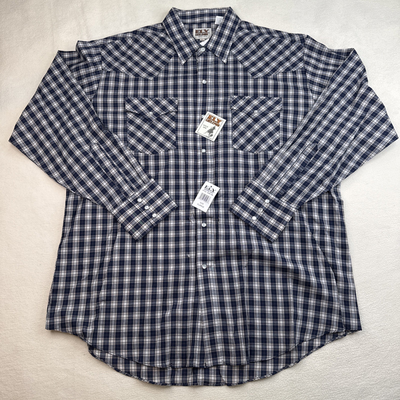 Vtg New Ely Cattleman Pearl-Snap Shirt XL Western Cowboy Long Sleeve Work Shirt