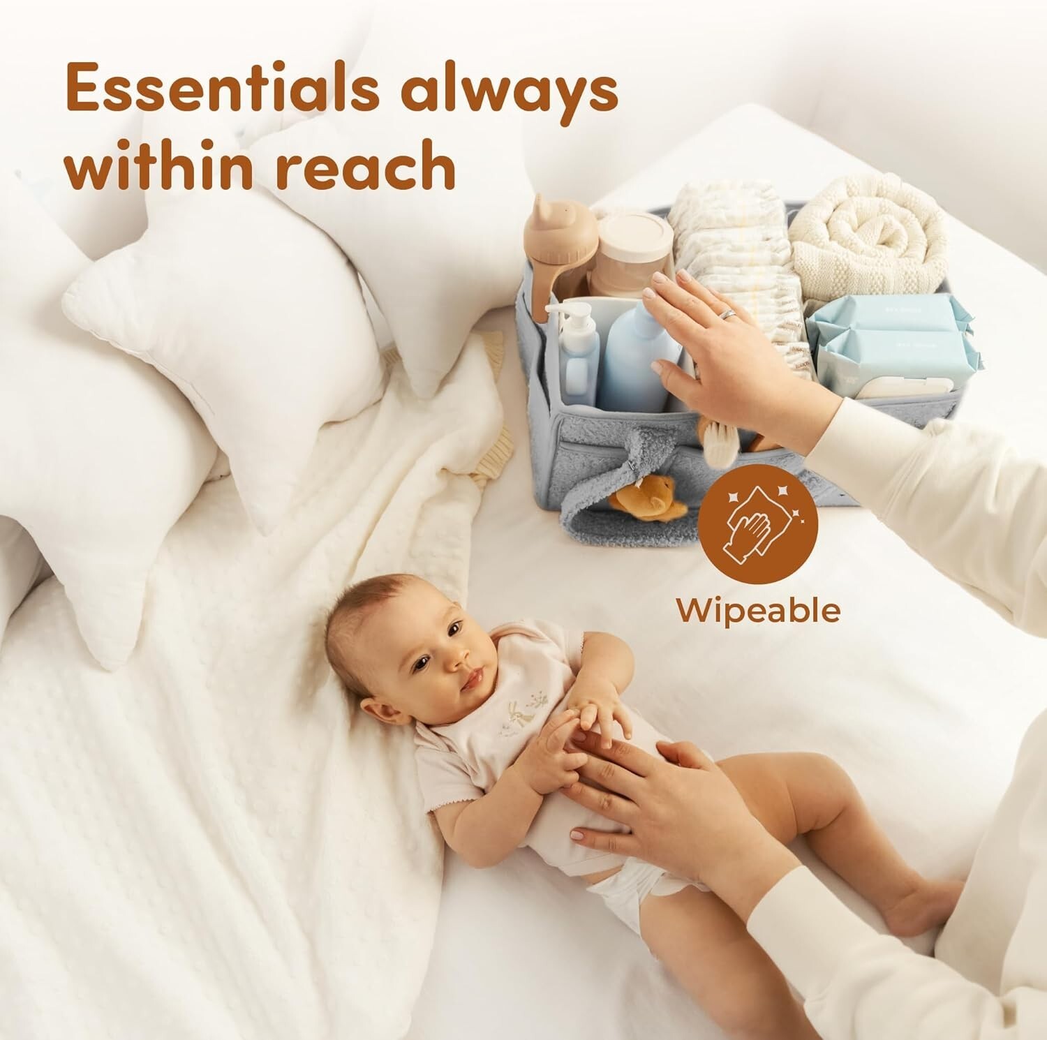 Baby Diaper Caddy Organizer Bag, Portable Soft Sherpa Nursery Basket, Grey