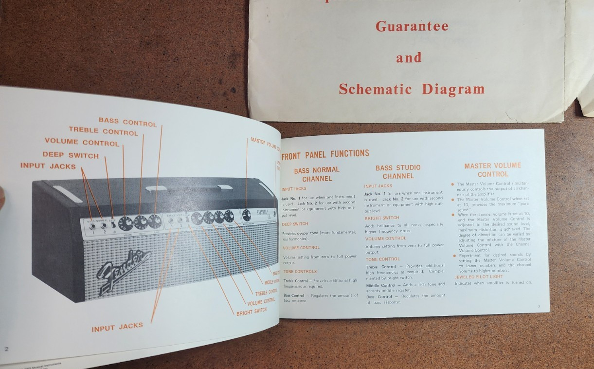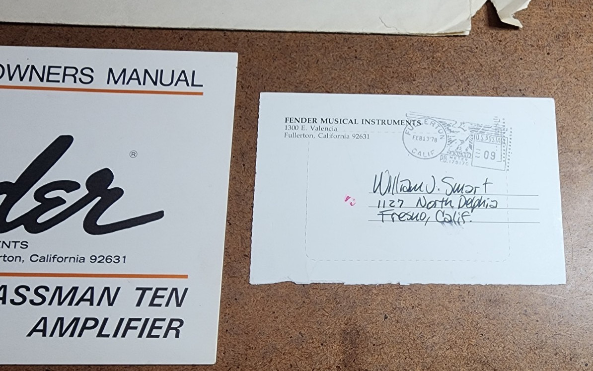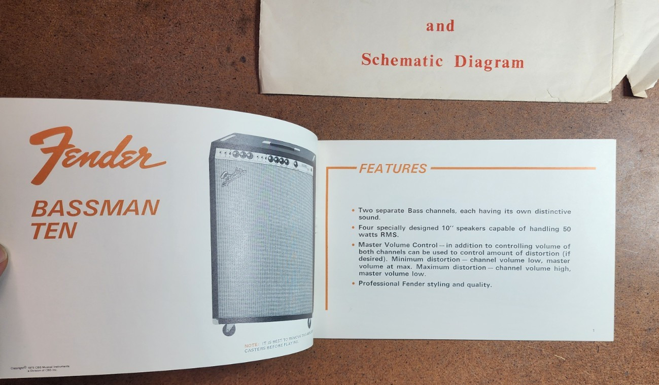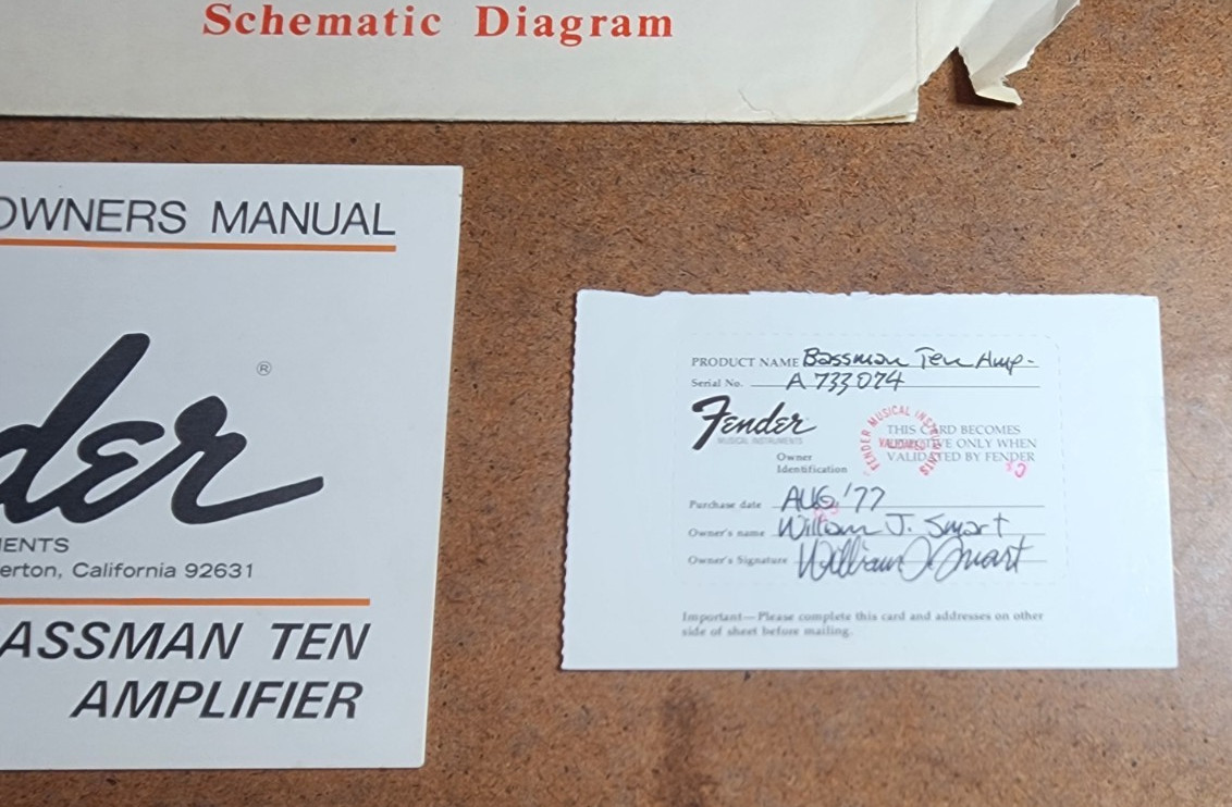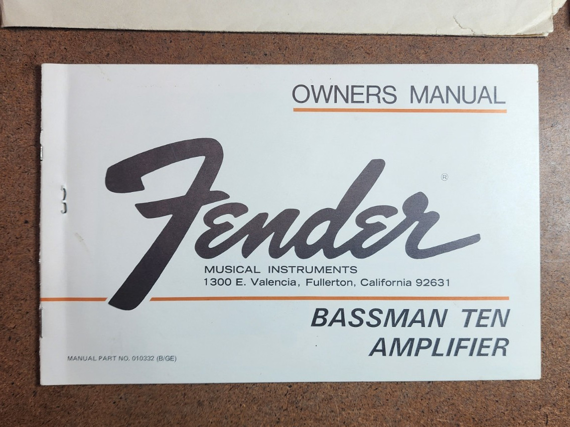 Vintage 1978 Fender Bassman Ten Amplifier Owner's Manual