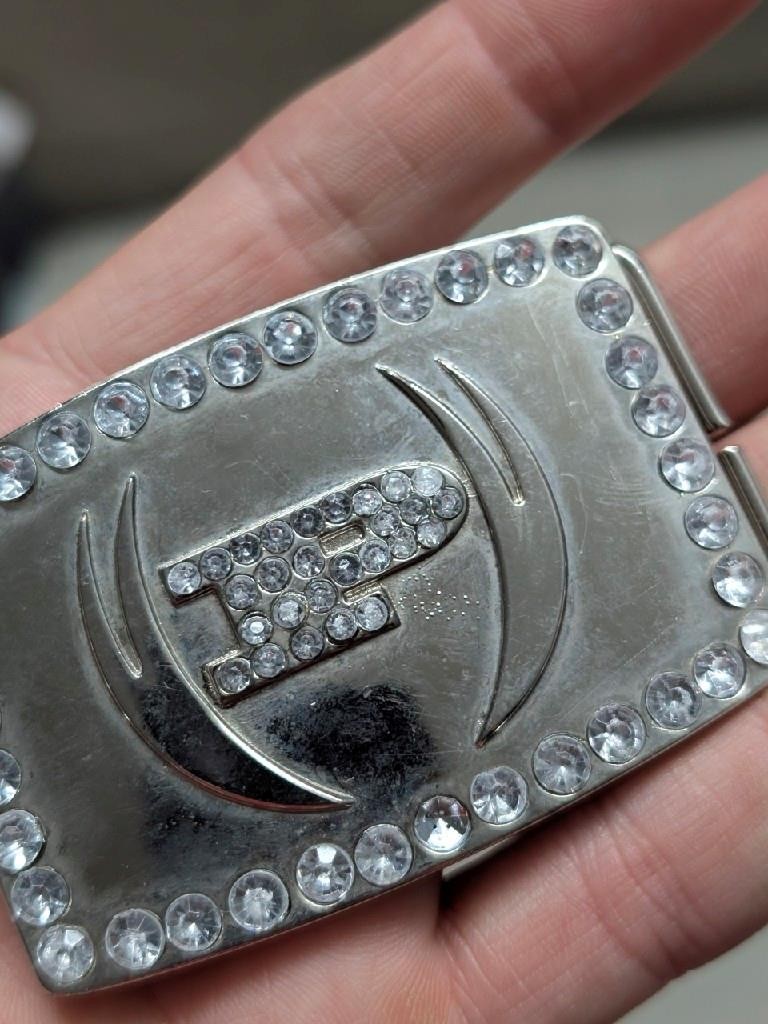 vintage Y2K rhinestone PHAT FARM belt buckle STUDDED chrome western cowboy