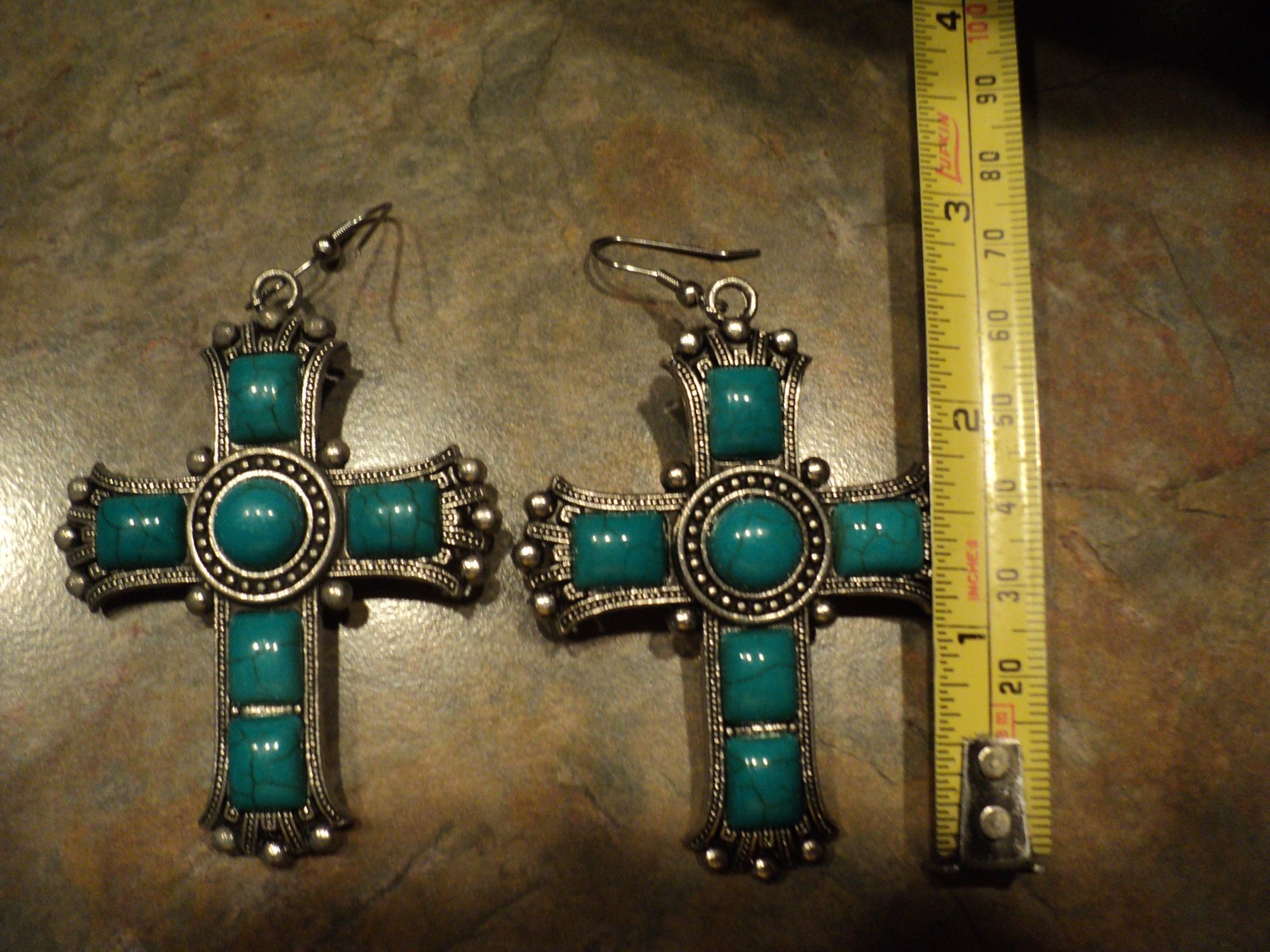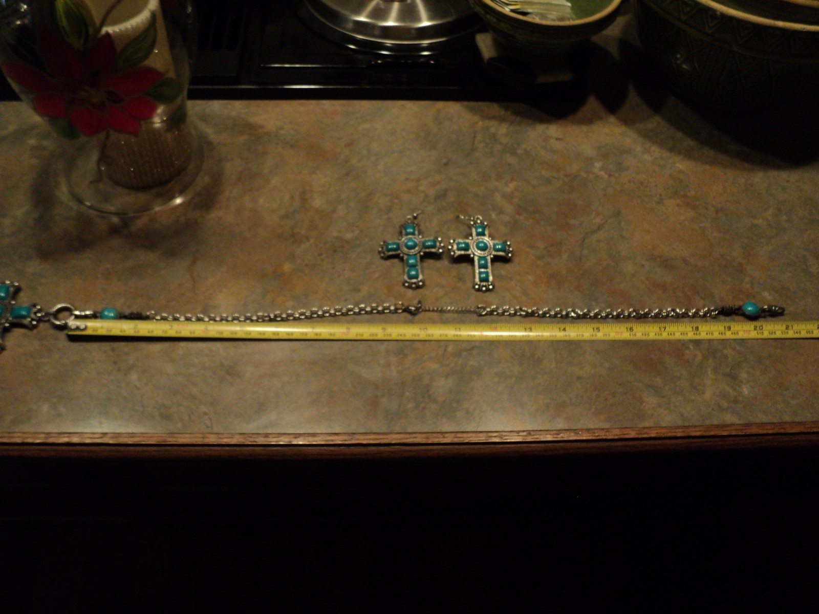 как выглядит Turquoise Vintage Set Cross Necklace and Earrings фото