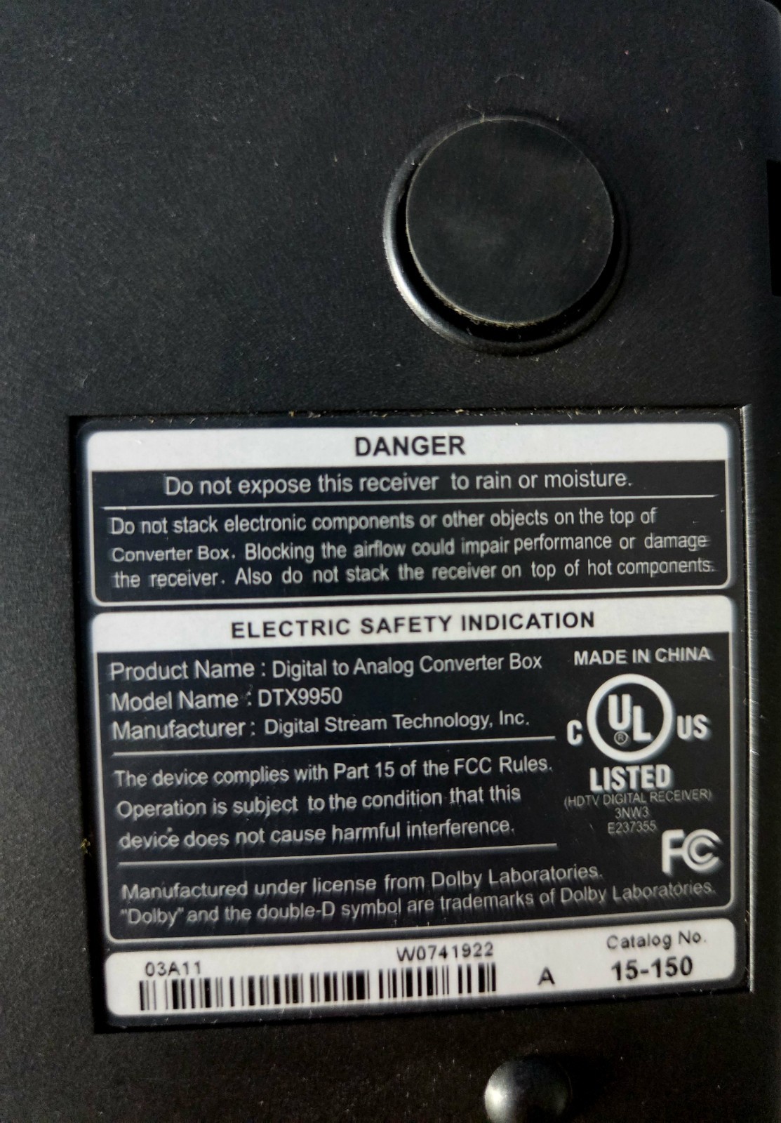 Digital Stream Analog Pass-Through Converter Box DTV DTX9950 NO REMOTE Tested
