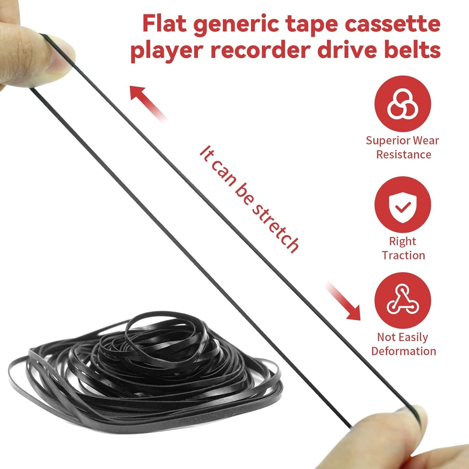 50PC Cassette Recorder Rubber Belts - Flat 40-135mm Range for Durable Repairs