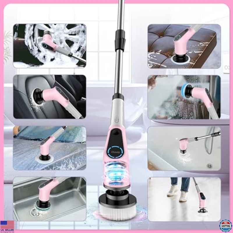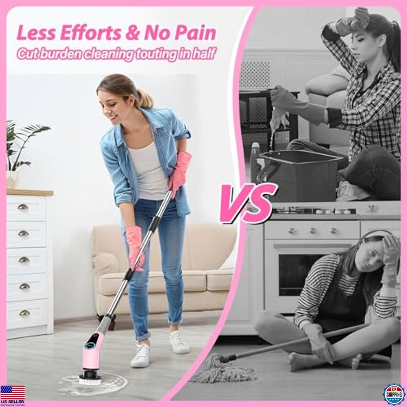 Cordless Electric Spin Scrubber with 8 Brush Heads Extension Handle, 2 Speeds