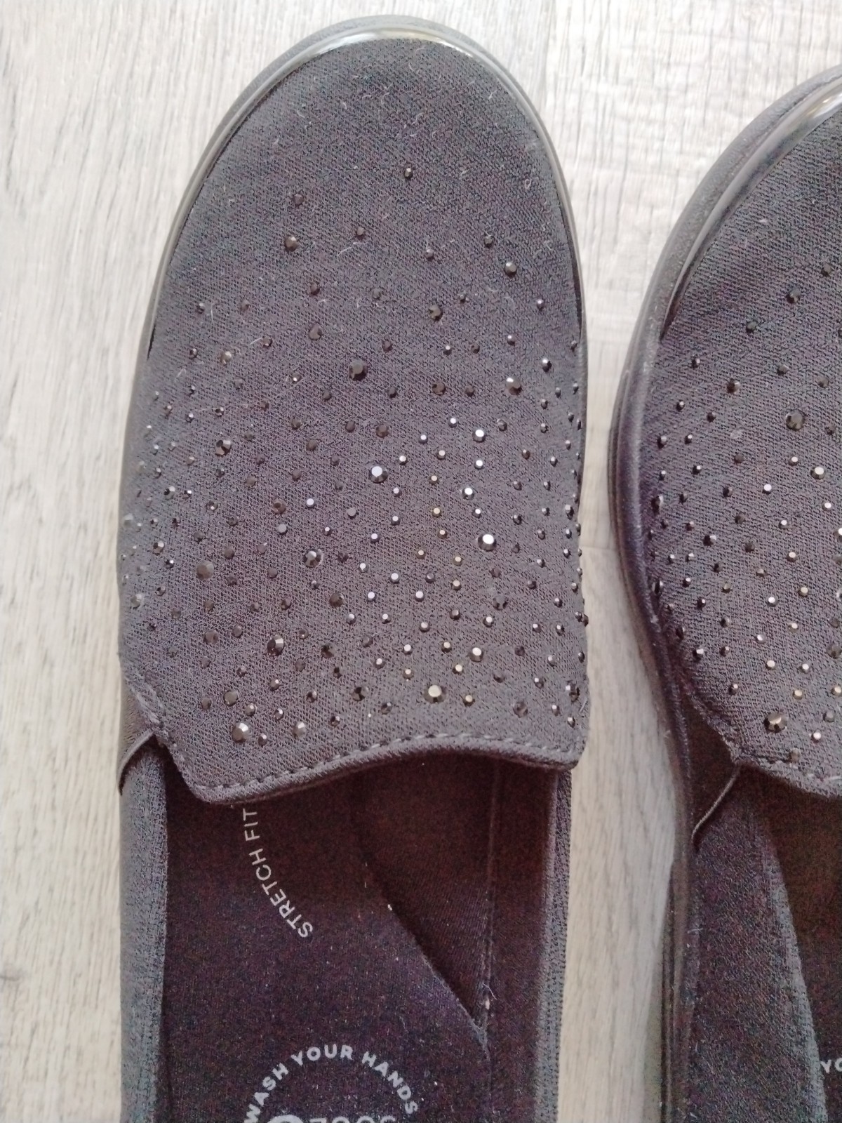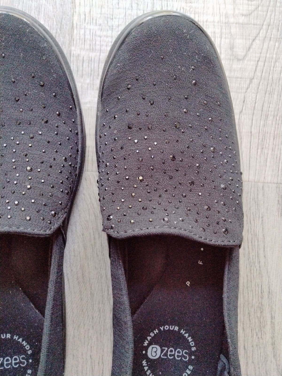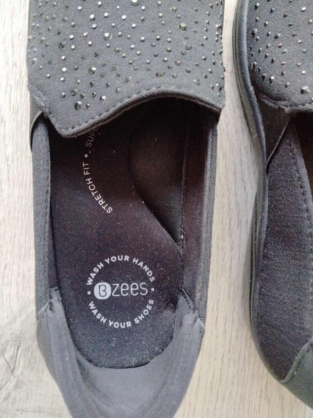 Women's bzees Black Slip On Shoes With Rhinestones. Washable Fabric 7.5