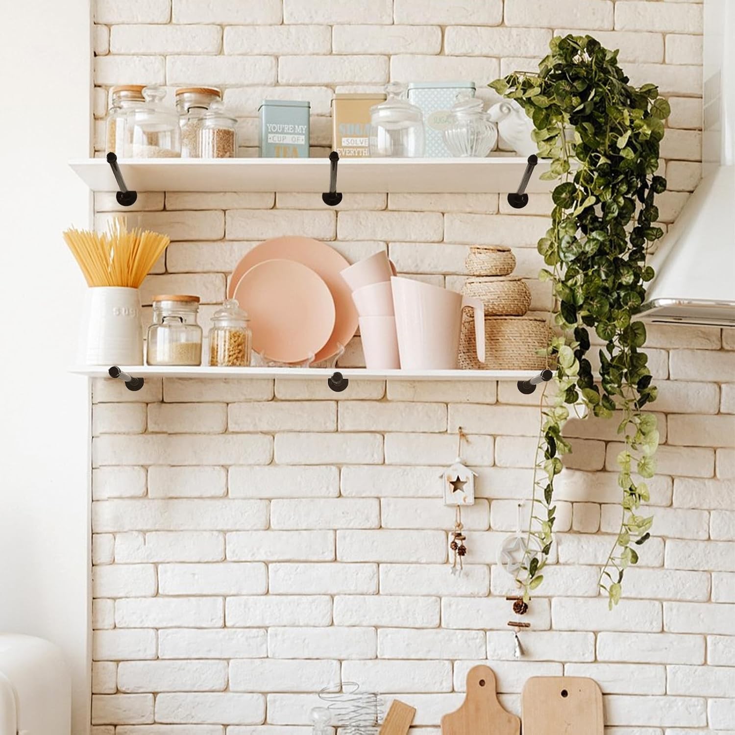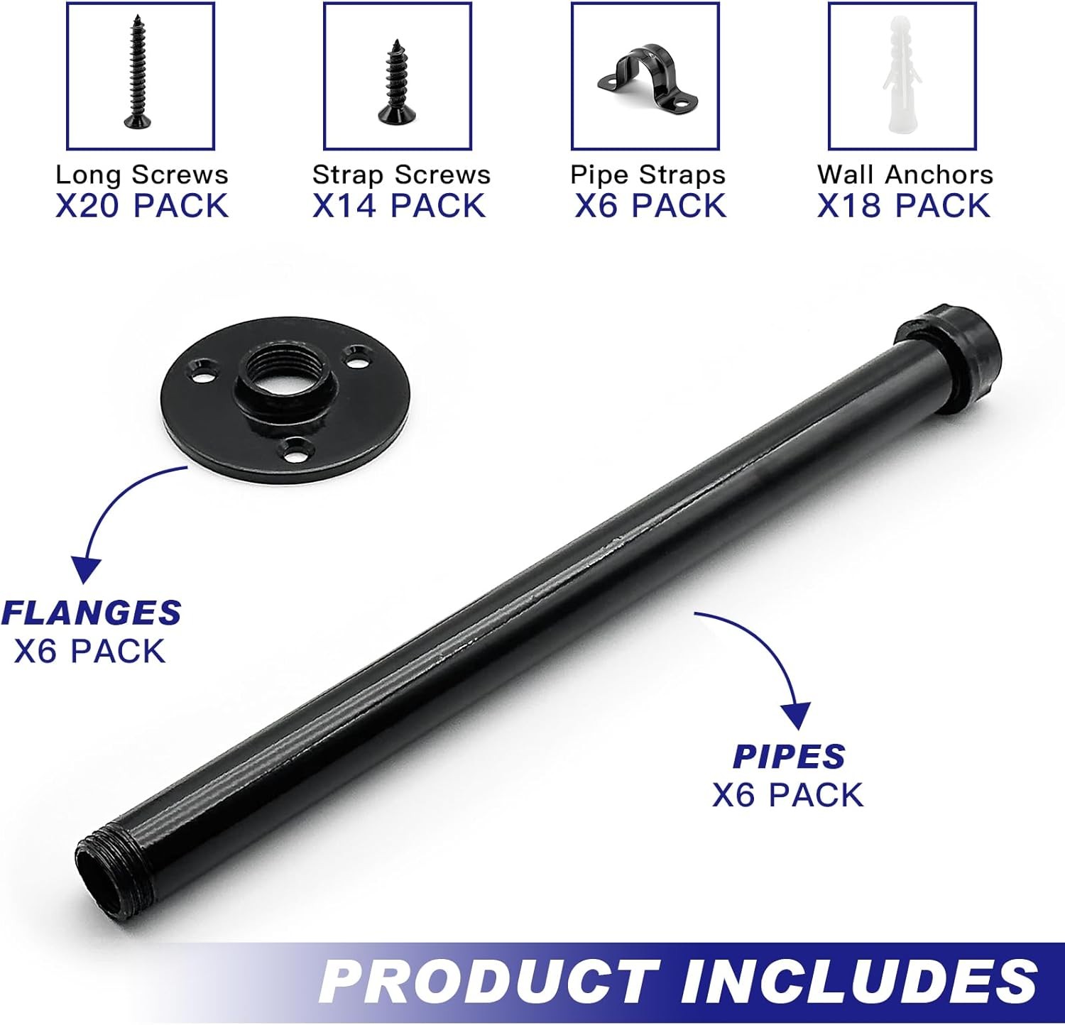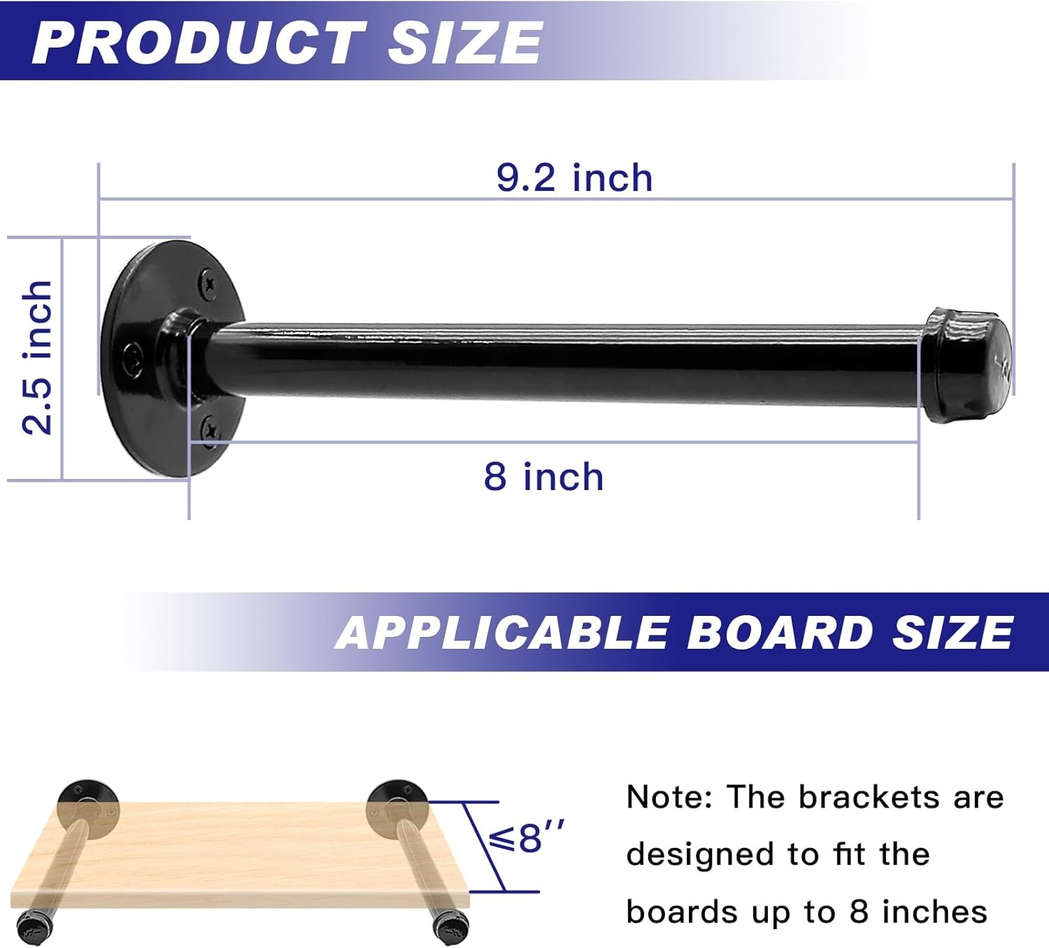 6 Pack Pipe Shelf Brackets 8 Inch, Industrial Iron 8 inch - 6 Pack, Black