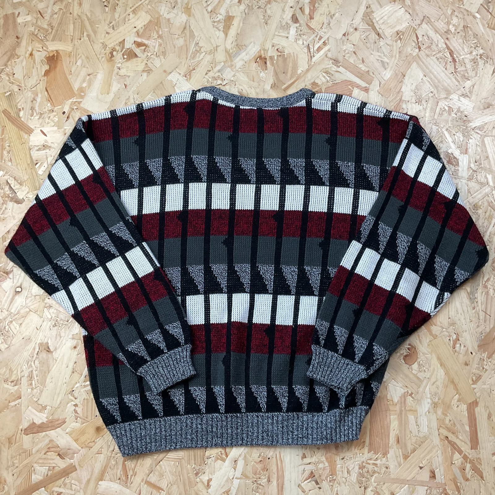 Vintage Grandad Abstract Jumper Black Red Made in USA Acrylic XL