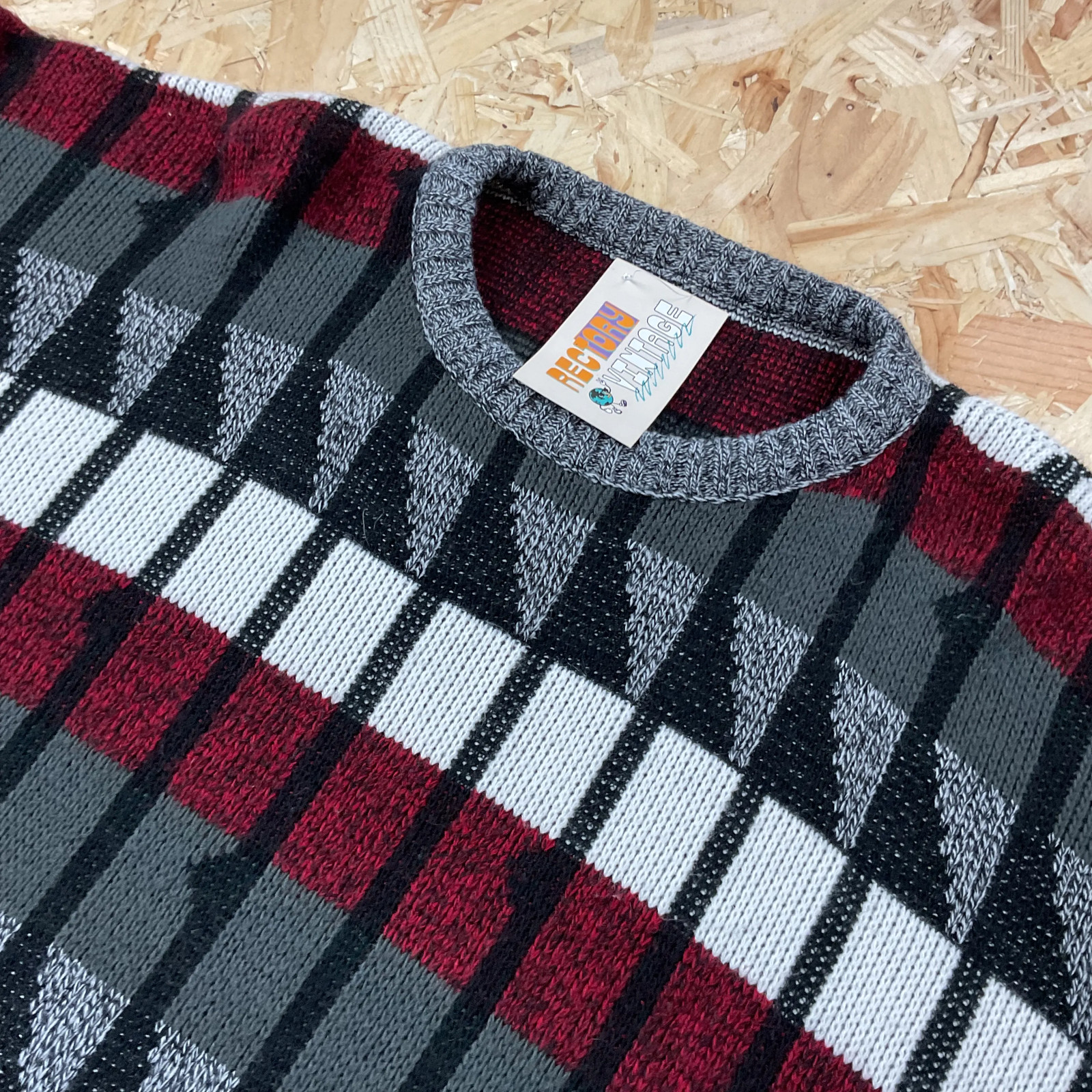 как выглядит Vintage Grandad Abstract Jumper Black Red Made in USA Acrylic XL фото