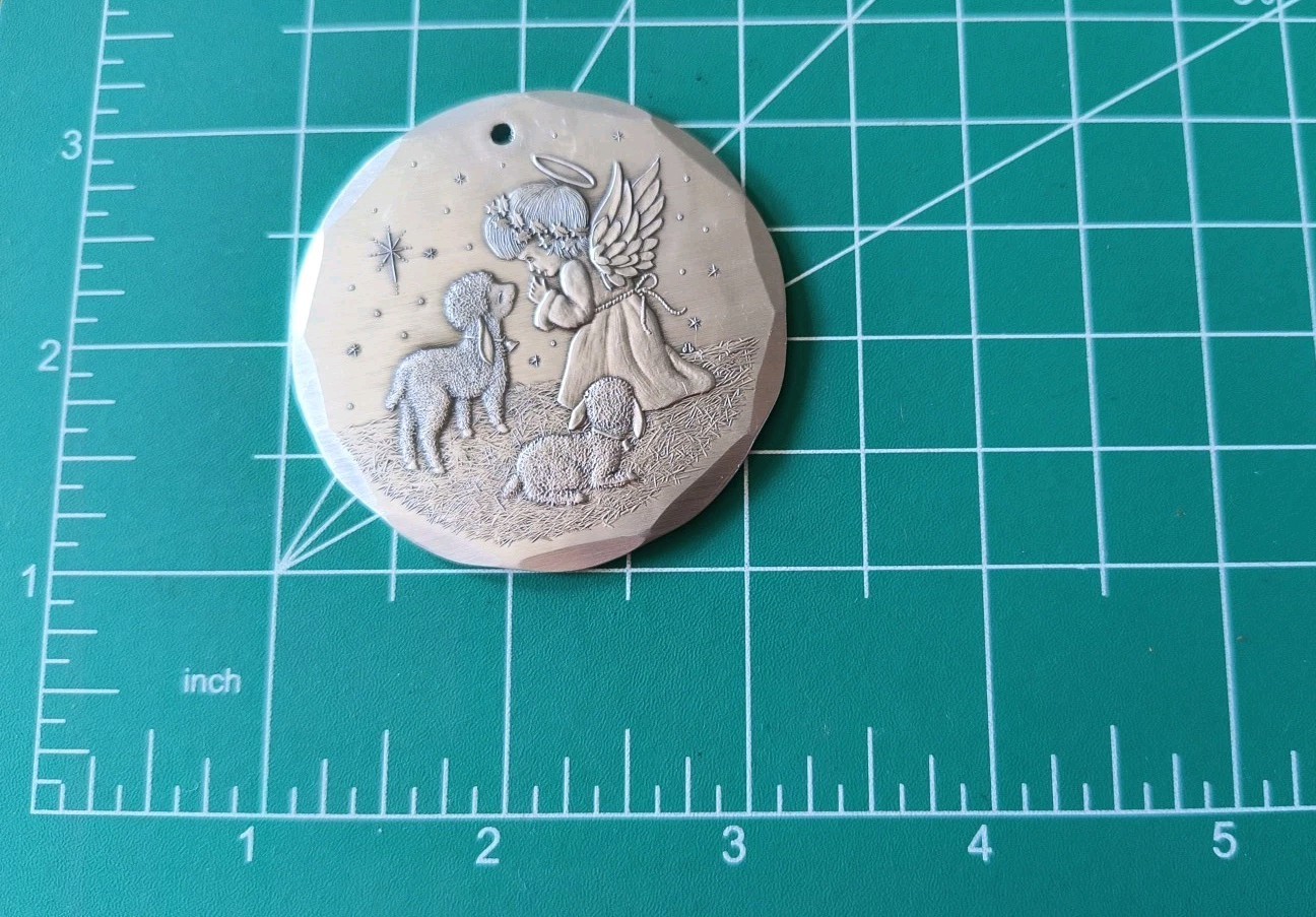 • Wendell August Aluminum Christmas Ornament Angel With Lambs Annual 1997
