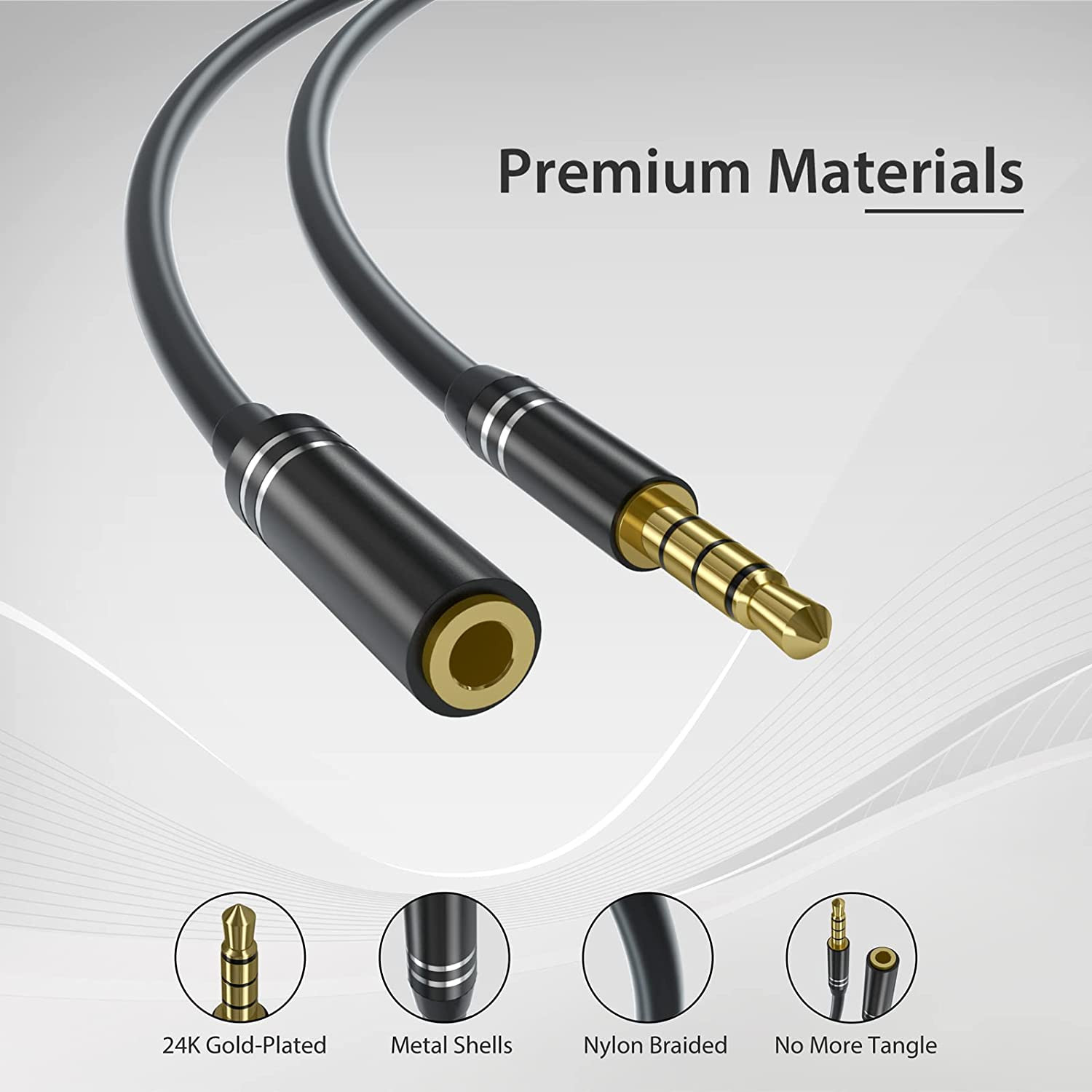 2 Pack 3.5Mm Headphone Extension Cable 4Ft/1.2M , 4 Pole Hi-Fi Stereo Sound
