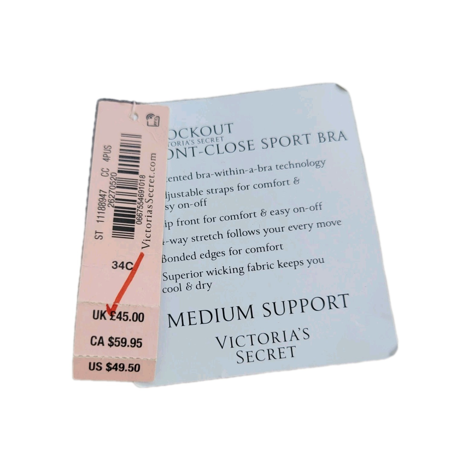 как выглядит Victoria s Secret Sport Bra  Knockout Front-Close  Medium Support  Size 34C фото