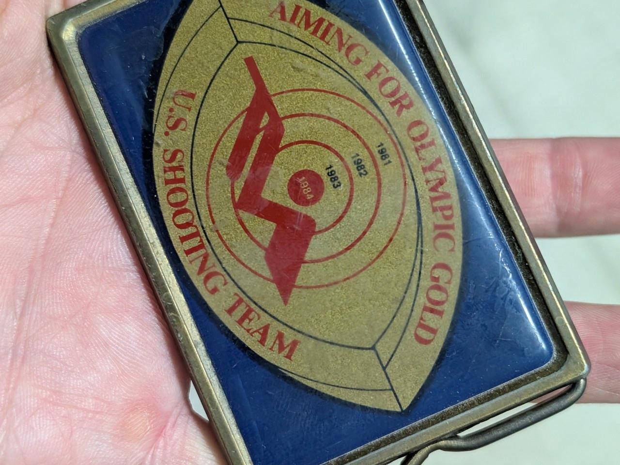 как выглядит vintage 1984 belt buckle US OLYMPIC TEAM brass SHOOTING western USA cowboy 1980s фото