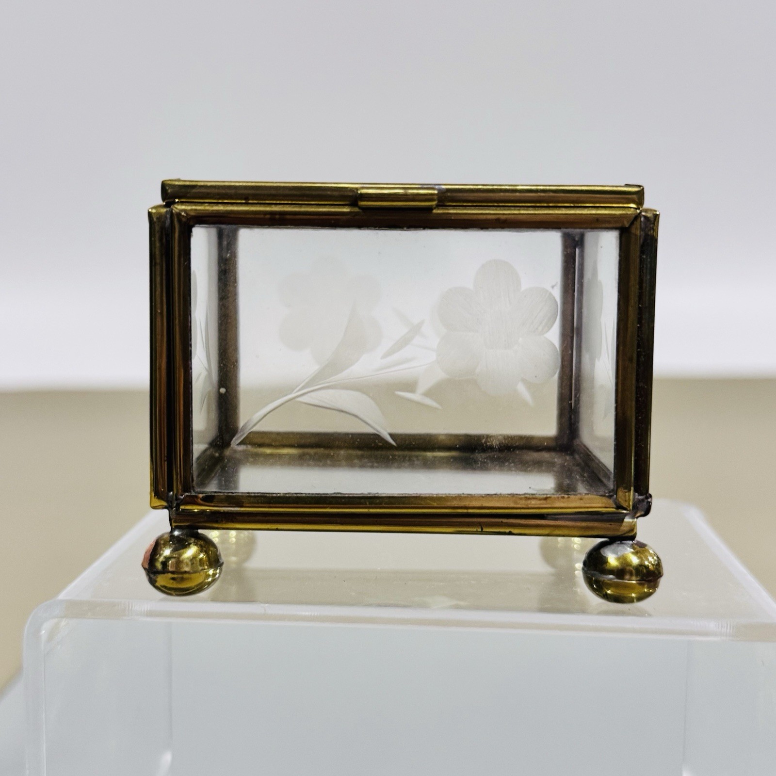• Vintage Floral Etched Clear Glass Mirrored Trinket Vanity Jewelry Box