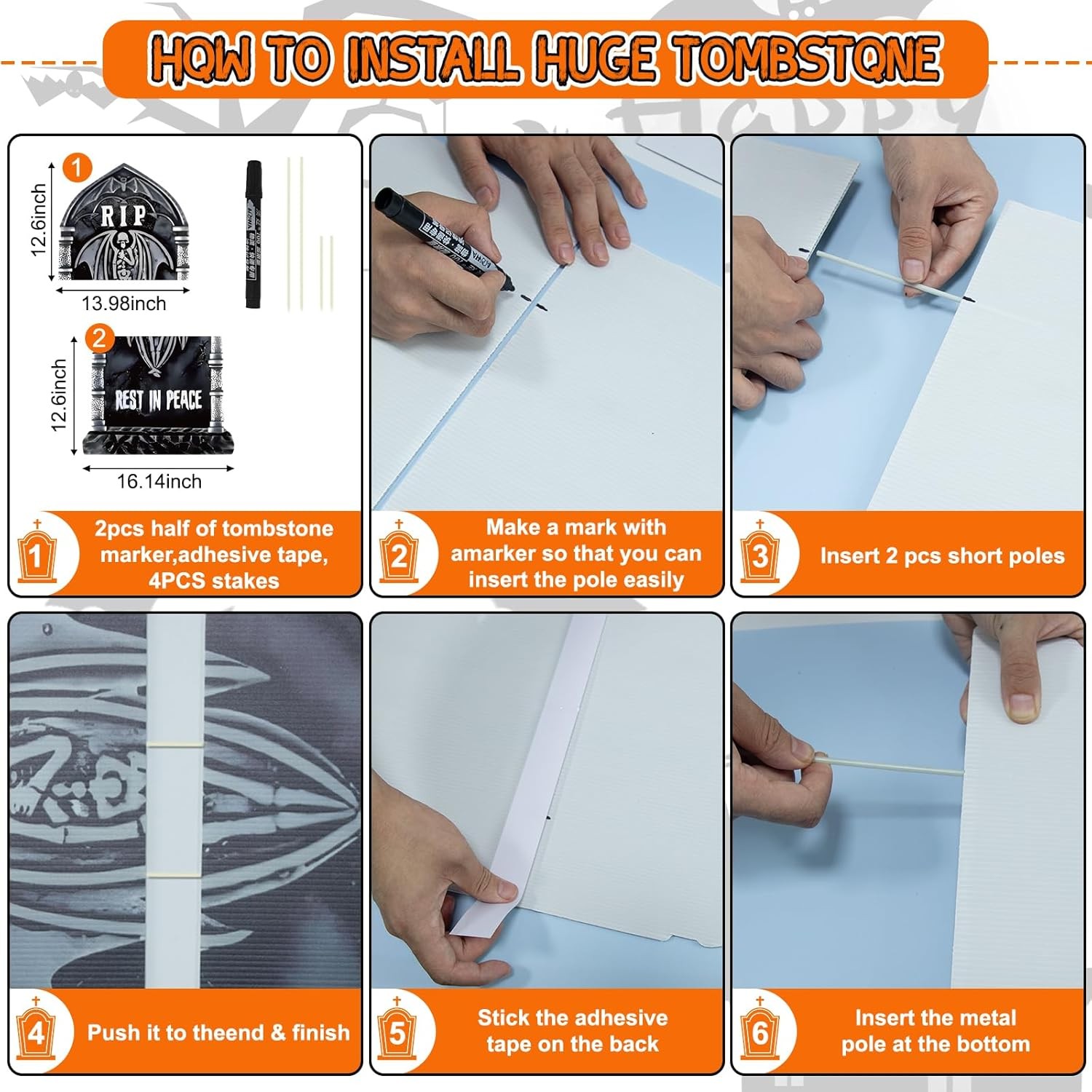 25.2Inch Halloween Tombstones Decorations Outdoor, DIY Large Tombstones for Grav