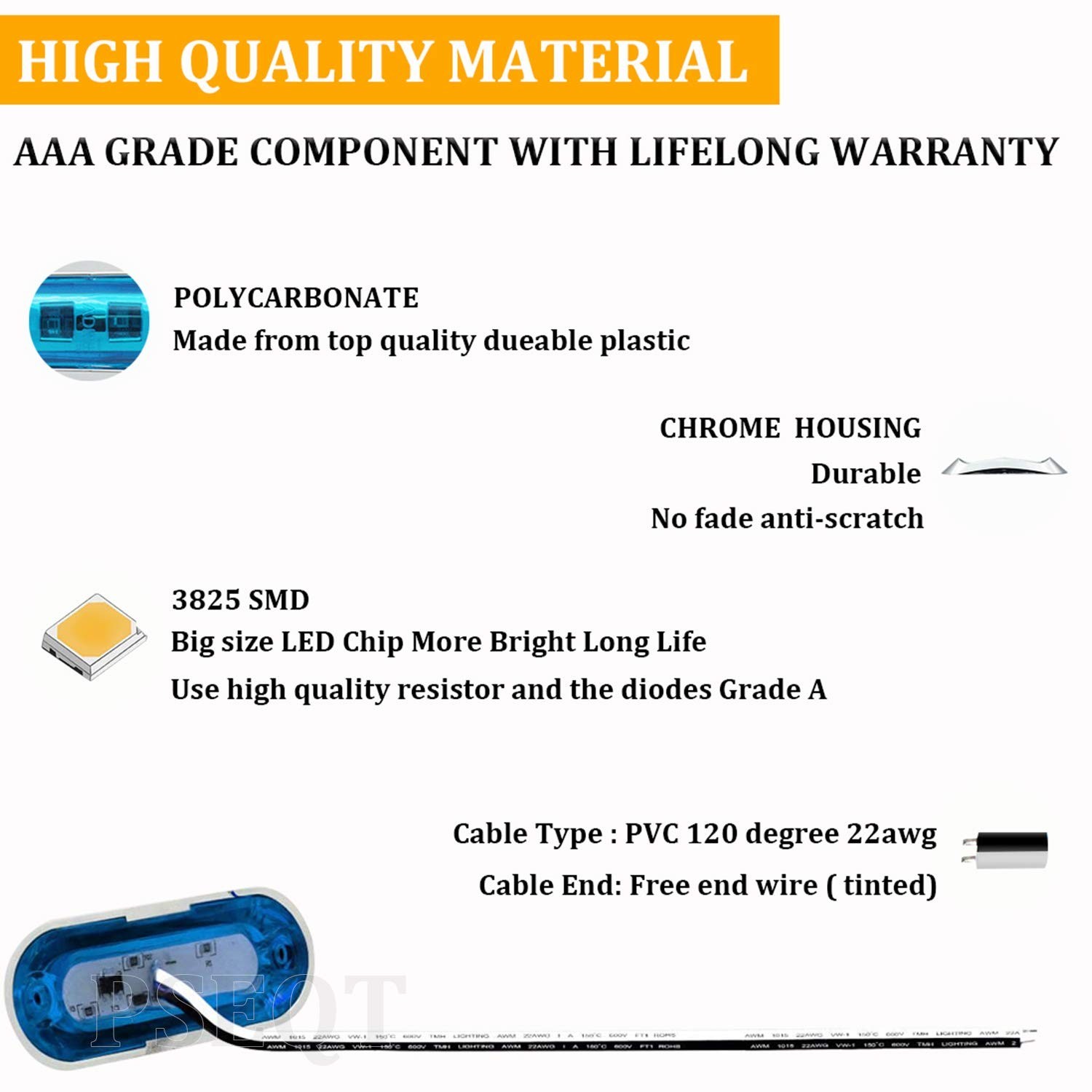 PSEQT 3.8'' Waterproof LED Lights - Courtesy, Interior, Deck, Navigation, Tra...