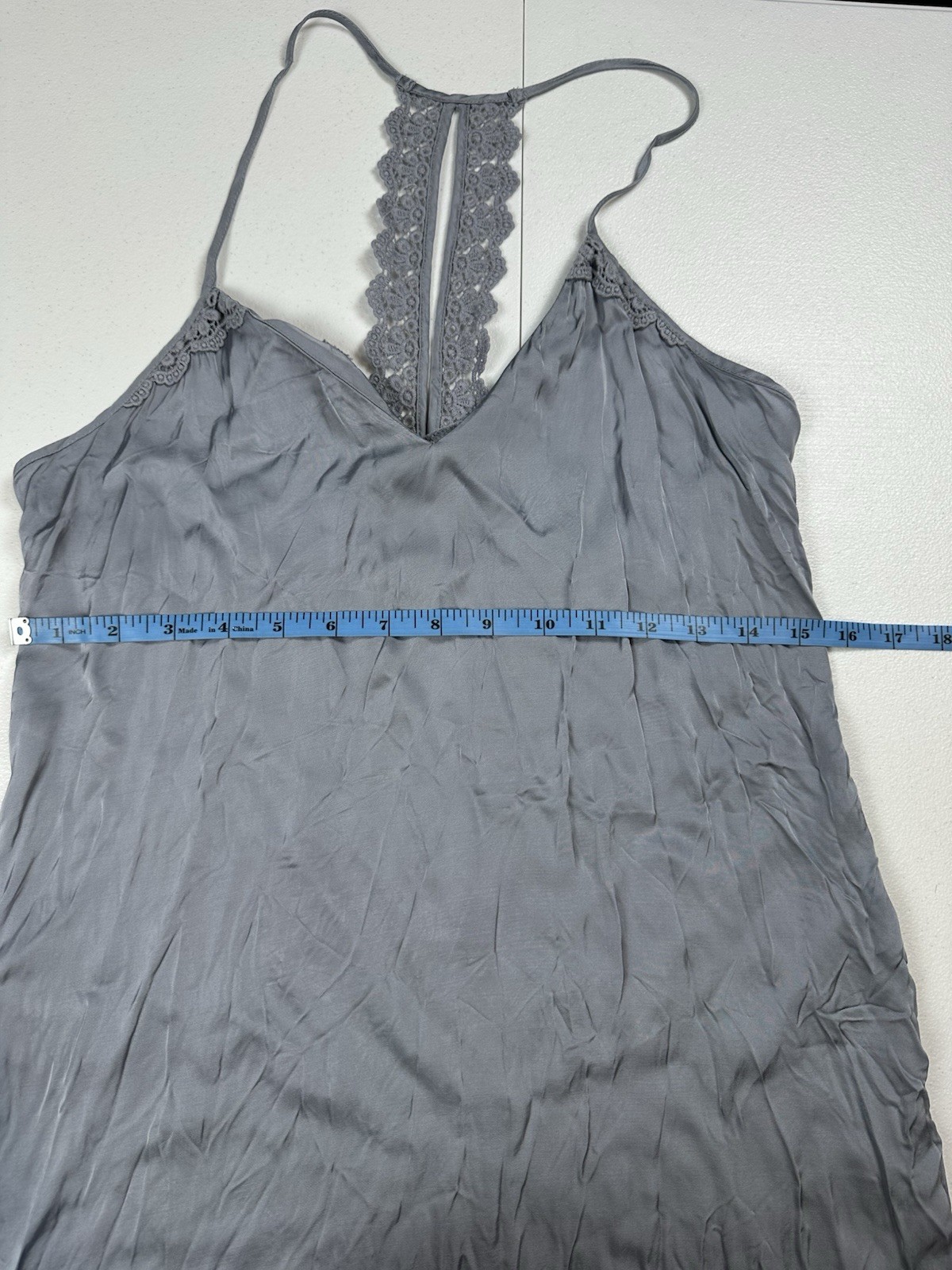 как выглядит BHLDN Anthropologie Annet Chemise Satin Mini Slip Dress XS Silver Bridal Viscose фото